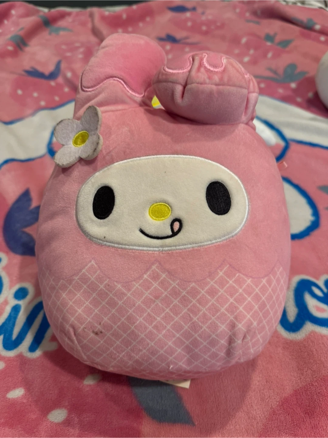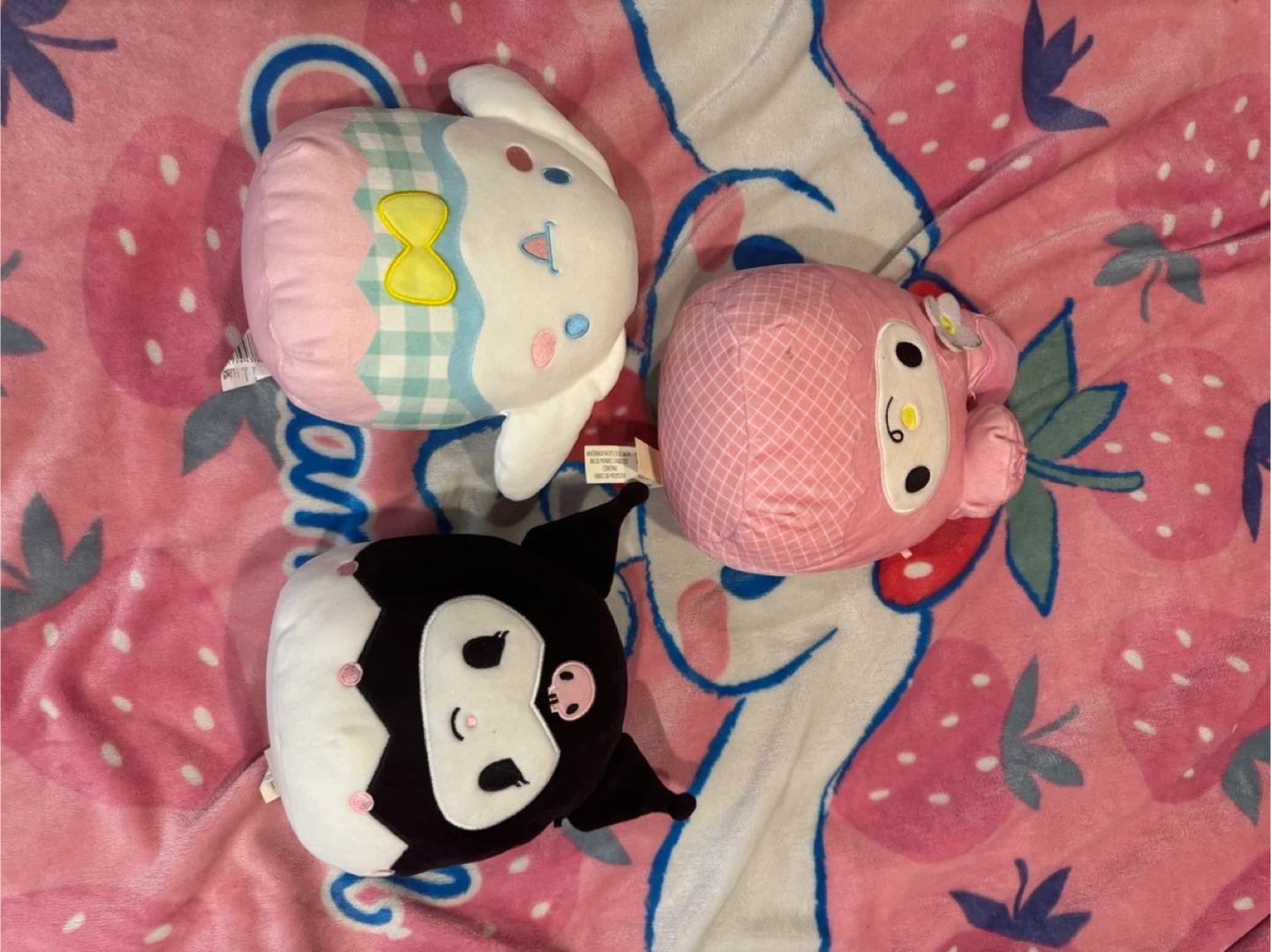 Cute Sanrio Squishmallow plush toys featuring Kuromi, Cinnamoroll, and My Melody. (Sat on shelves whole life)