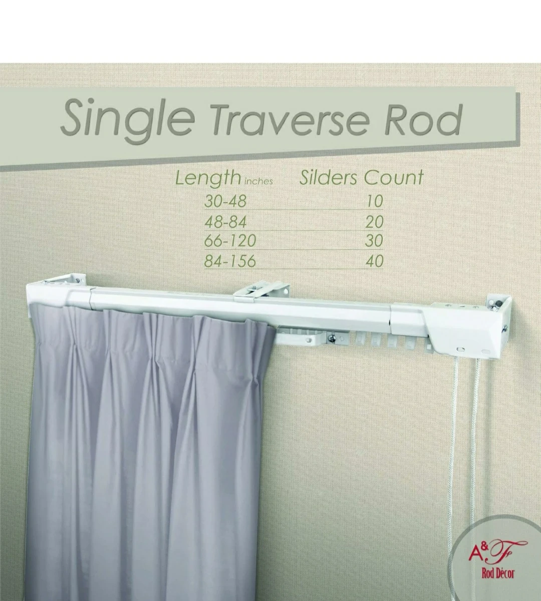 White Single Traverse Rod for Curtains