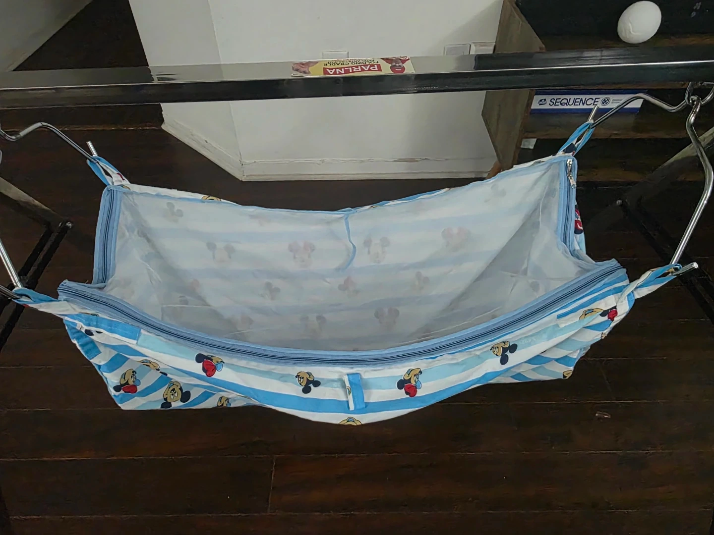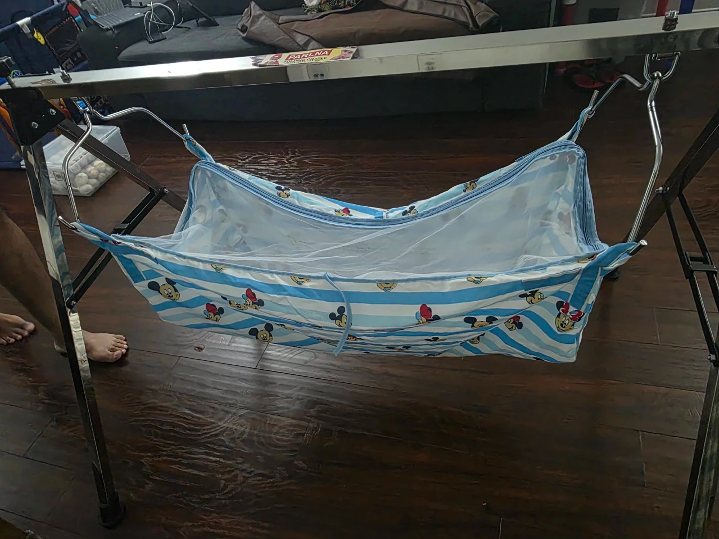 Features a cute Mickey Mouse pattern and a mosquito net. Fabric material.