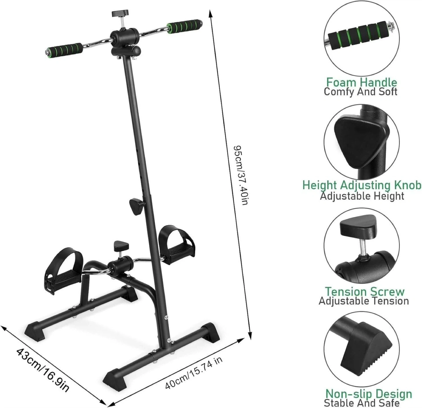 This pedal exerciser has adjustable height and tension for both upper and lower body workouts. It features foam comfort grips and a non-slip design for stability. Perfect for use at home during recovery or for general fitness.
