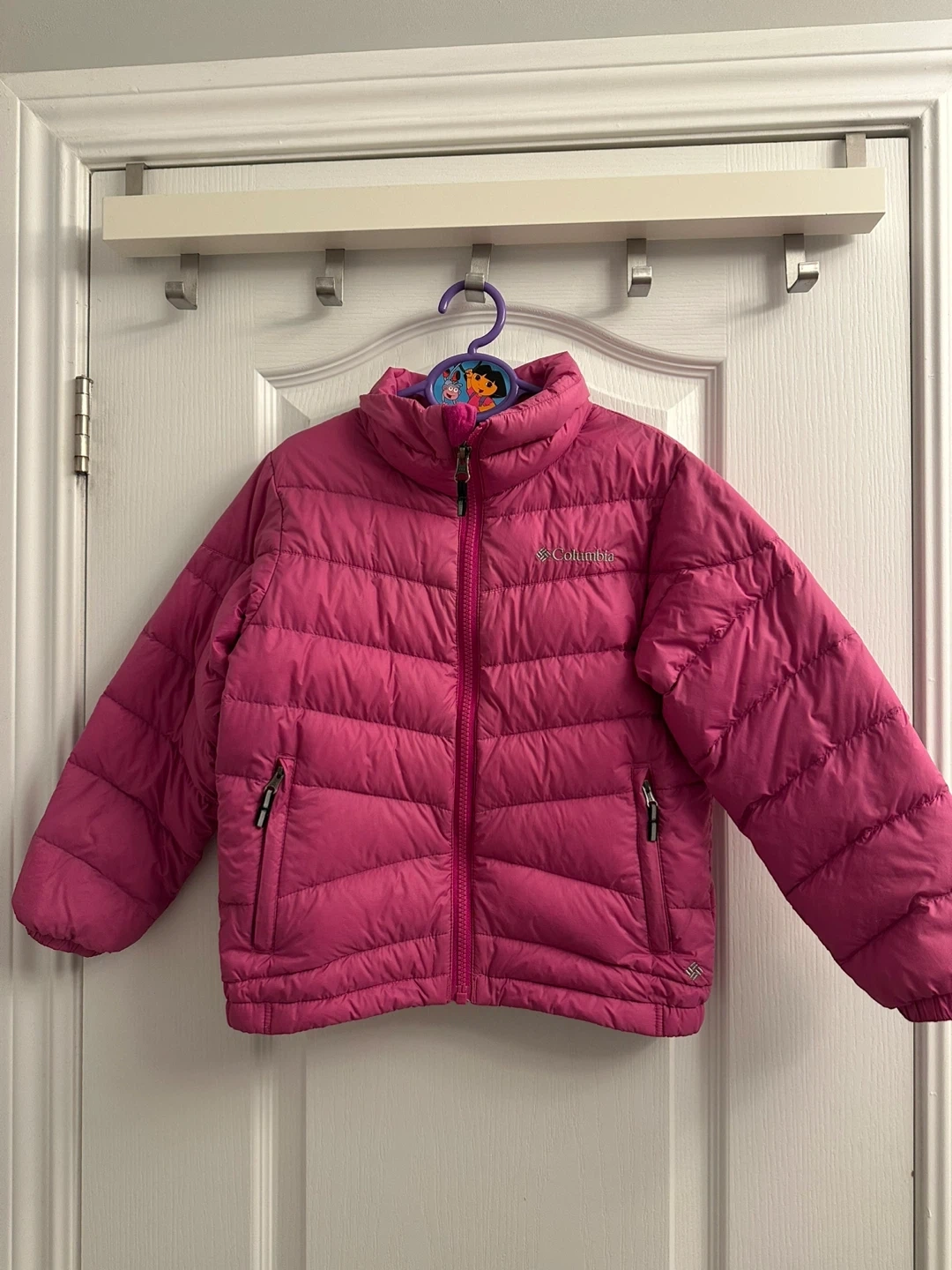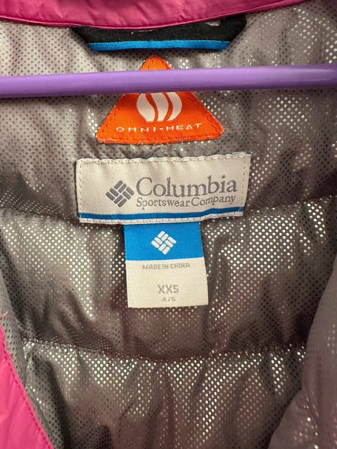 Selling a Columbia puffer jacket in a bright pink colour. It's a size XXS and features Columbia's Omni-Heat technology to keep you warm and cozy during colder weather! Perfect for layering or wearing on its own