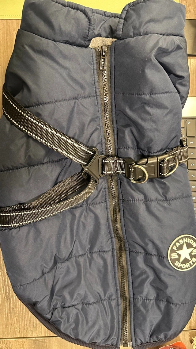 Keep your furry friend warm and stylish with this PetsAreLife 4XL dog coat, designed for cold weather with a built-in harness. This coat is in excellent condition and has only been worn a few times, ensuring your pet stays comfortable and secure during walks. Features: Size: 4XL, Colour: blue, Built-in Harness, Waterproof winter jacket. Don't let your pup miss out on winter fun! I think $20 CAD is a great price for this coat, but I am willing to negotiate. If the ad is up, the coat is ready for a new home. Cash and cashless payment accepted.