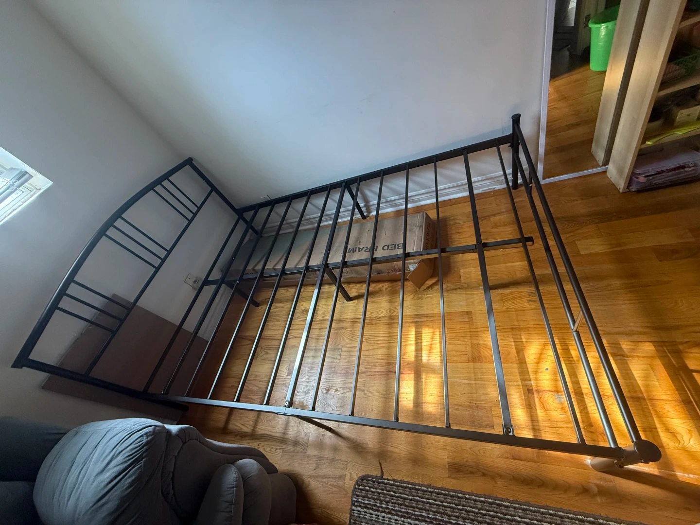 A sturdy black metal bed frame with a classic arched headboard and footboard. It's designed for durability and provides a solid foundation for your mattress. Easy to assemble.