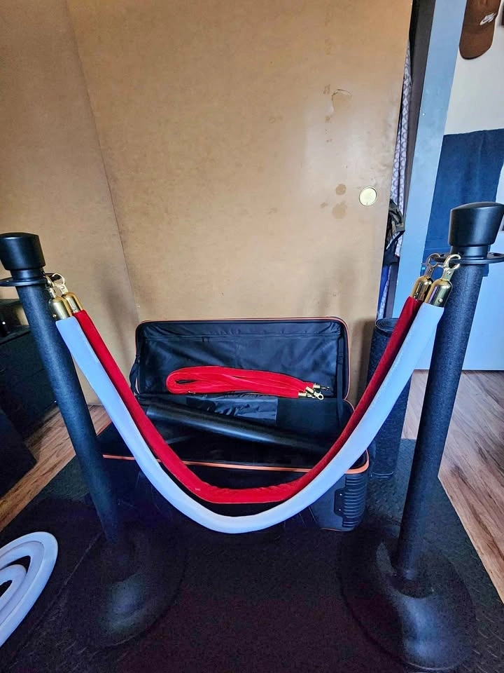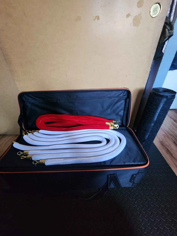 4 white velvet ropes, 4 red velvet ropes.