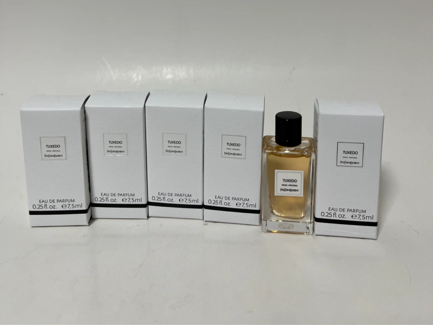 Six Yves Saint Laurent Tuxedo Eau de Parfum miniatures. Each bottle is 0.25 fl. oz. or 7.5ml. Perfect for trying out the fragrance or for travel!