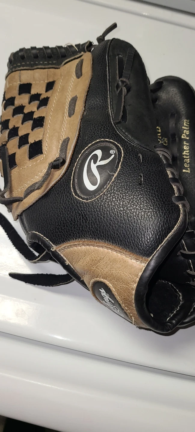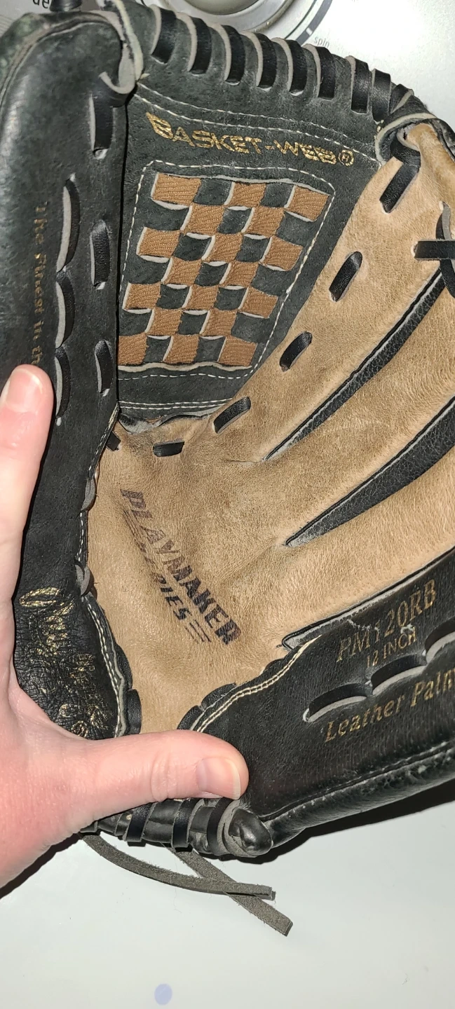 Selling a Rawlings Playmaker Series PM120RB baseball glove. It's a 12-inch glove and made with a leather palm. Lightly used