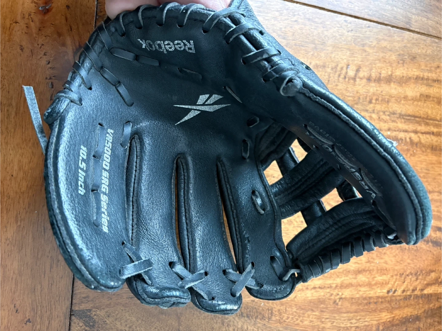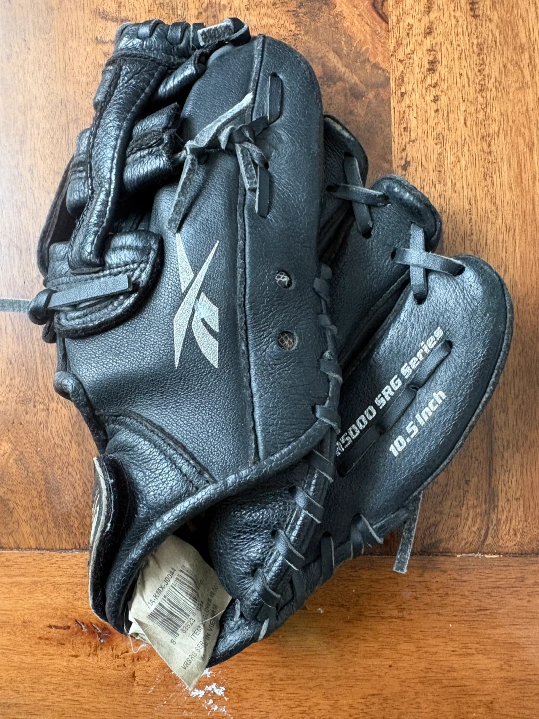 Black leather baseball glove from Reebok. It's a 10.5-inch size from the VR5000 SRG Series. RHT. Pick up is in Burlington.