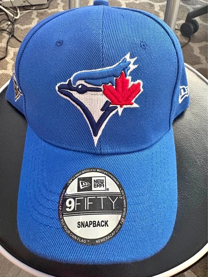 Get ready to cheer on the Blue Jays with this New Era Toronto Blue Jays World Series Game Cap 9FIFTY. This hat is brand new and features a snapback closure for an adjustable fit. The vibrant blue colour and detailed World Series patch make it a standout piece for any Jays fan. Whether you're at the game or just showing your team spirit, this hat is a perfect choice. SportChek sells them for $53.99+ tax but you can buy this one for less. Brand: New Era, Team: Toronto Blue Jays, Style: 9FIFTY Snapback, Colour: Blue, Features: World Series patch. Better deal if you purchase a jersey too. Check out my listings for other great deals. Pickup downtown Toronto!