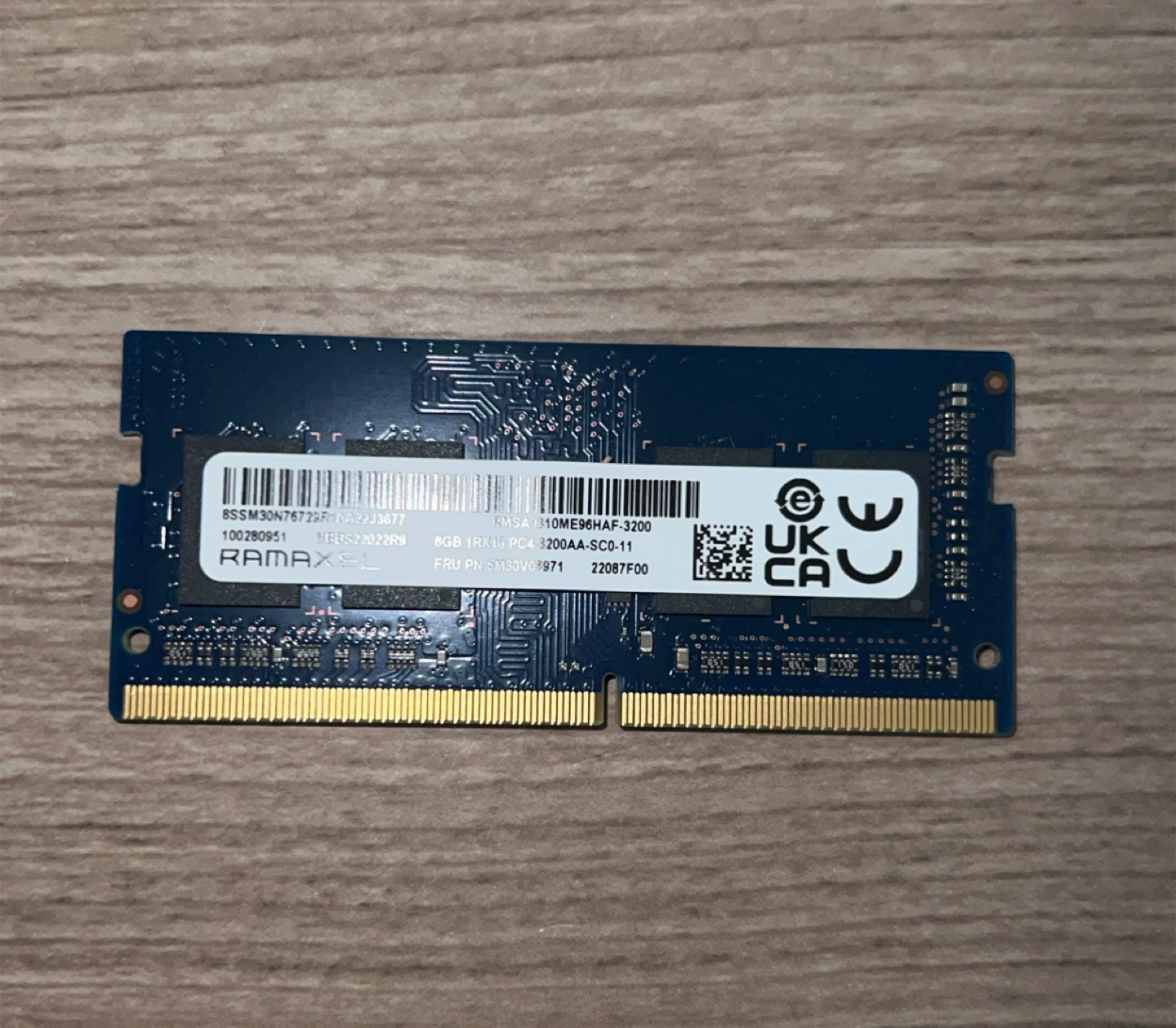 Ramaxel 8GB DDR4 PC4-3200AA SODIMM laptop RAM. It's a single 1RX16 module. The manufacturing date appears to be from February 2022.