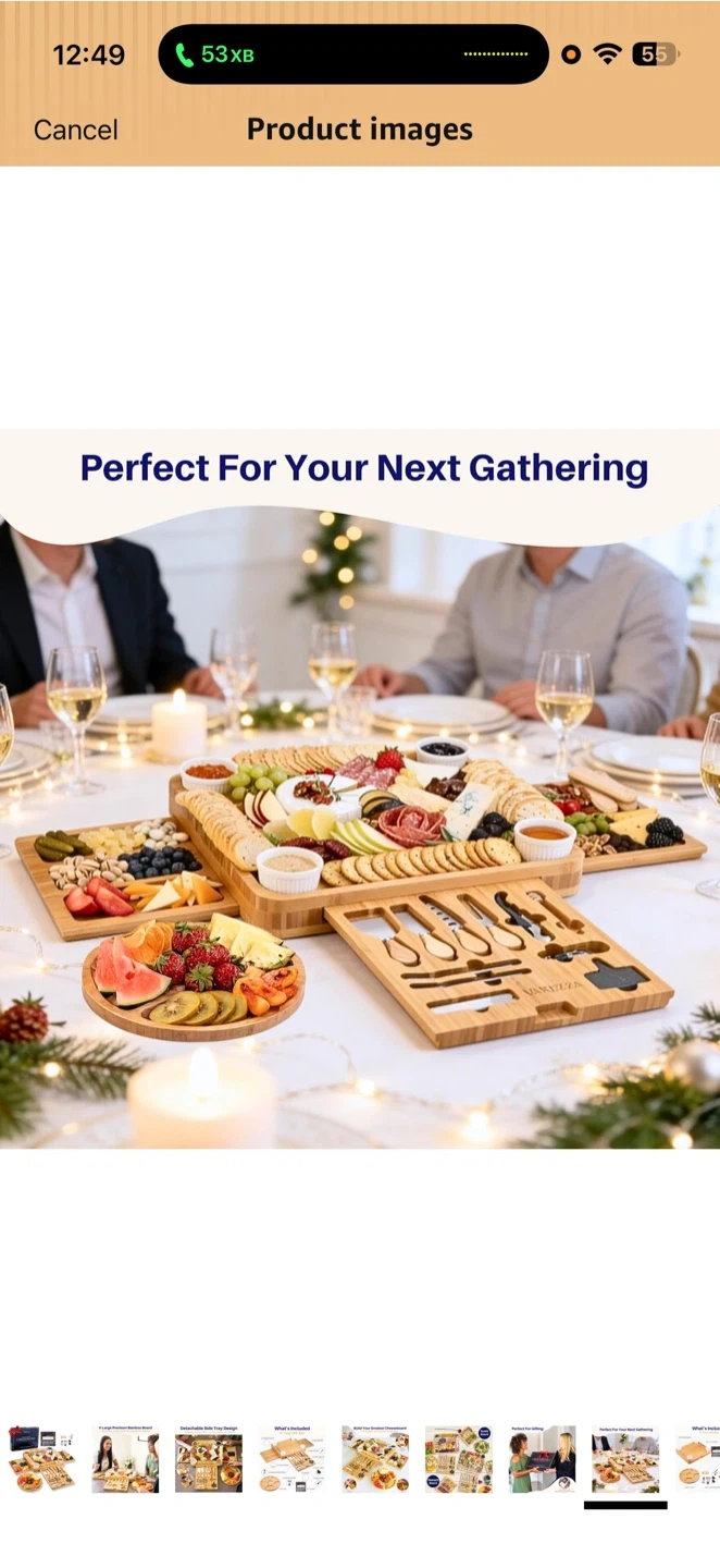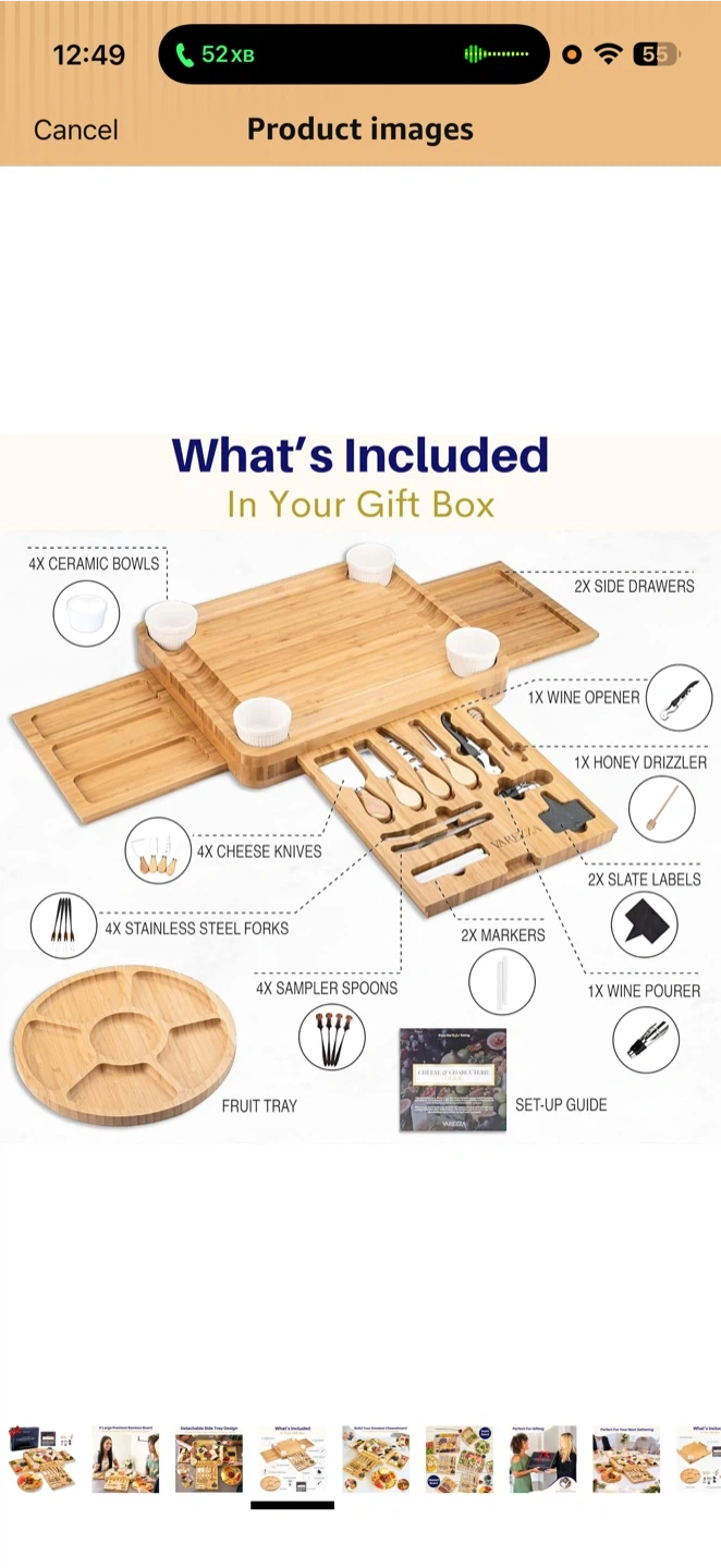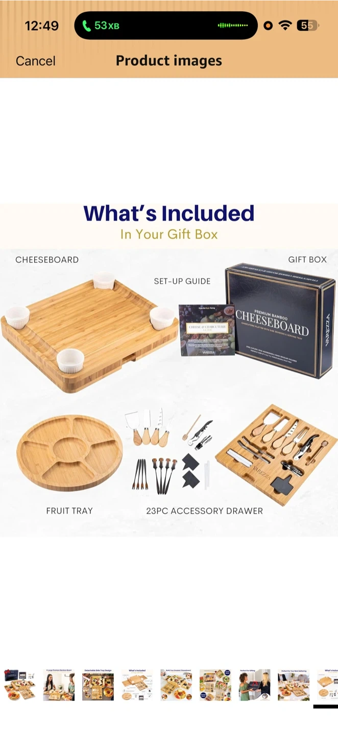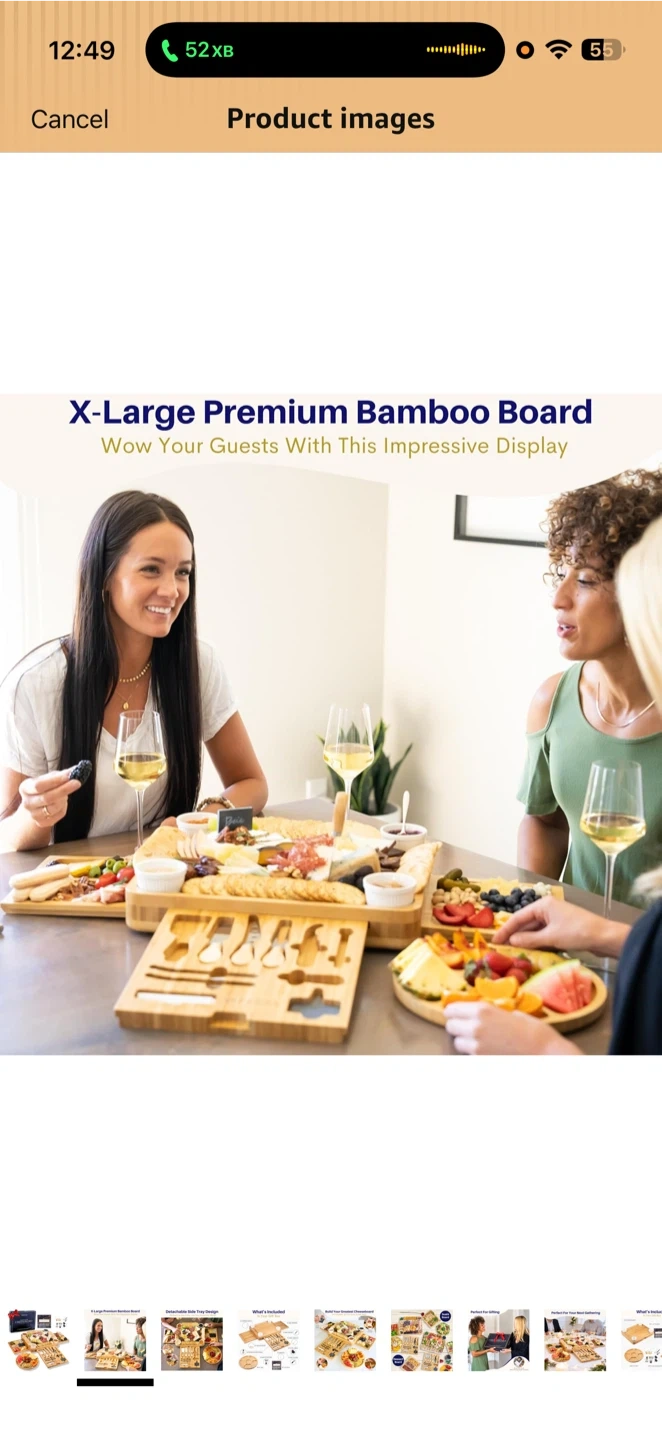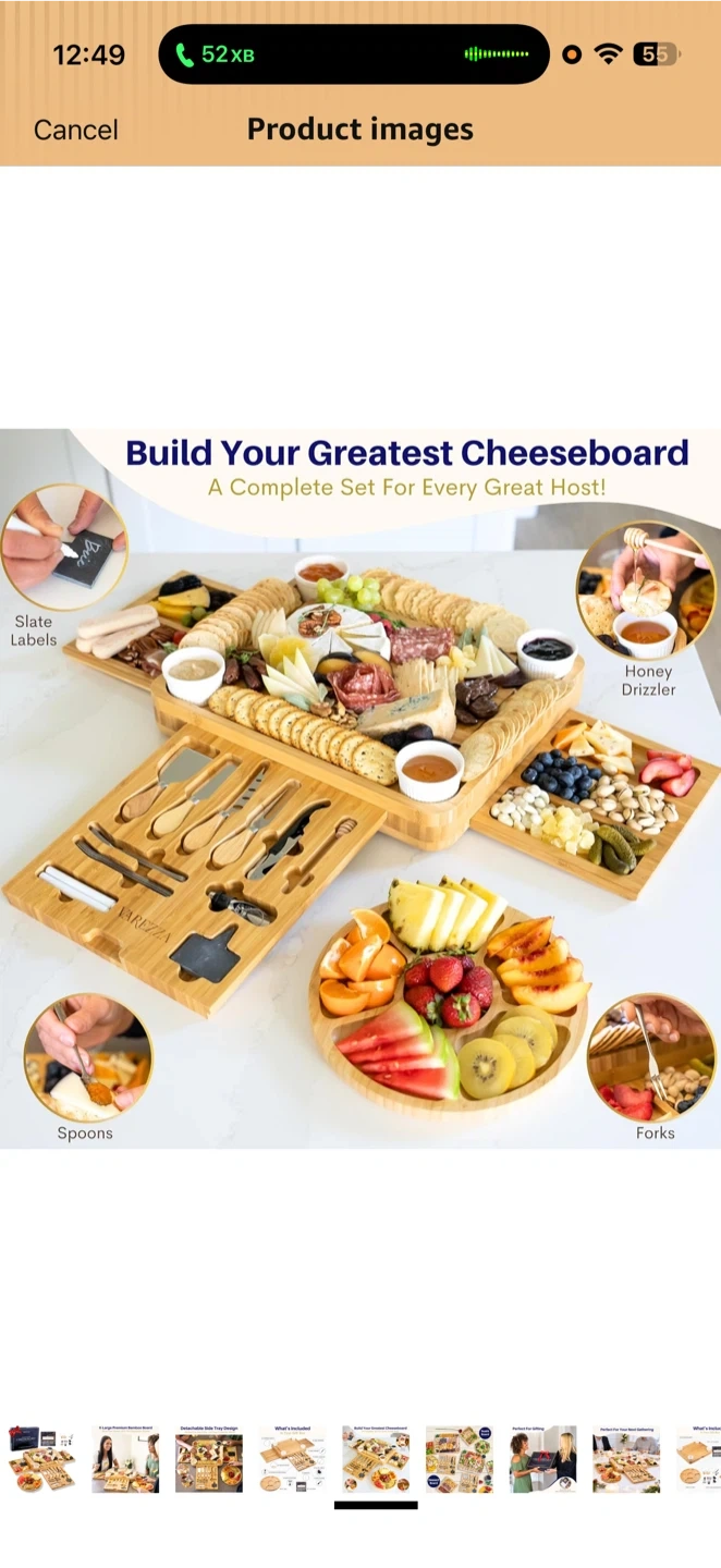 Beautiful X-Large bamboo charcuterie board set with detachable side trays and full accessory drawer. High-rated set on Amazon (retails for $118+).