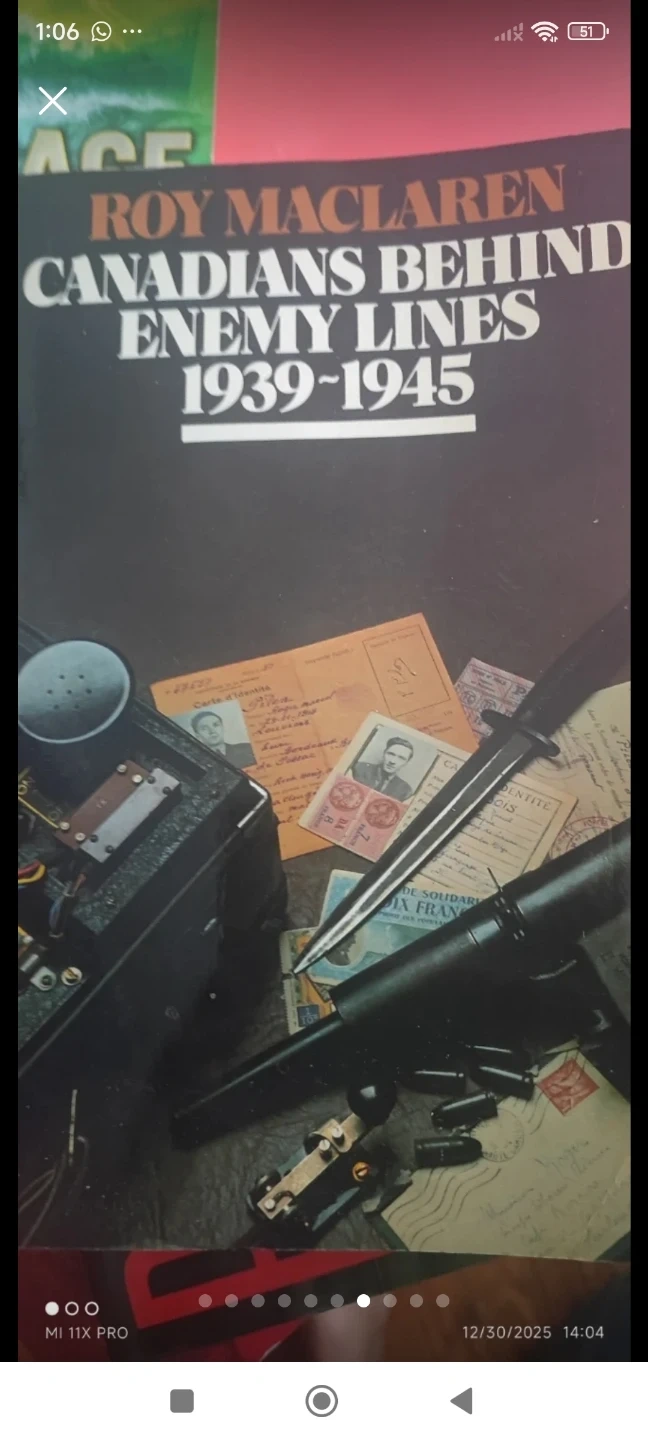 This book, "Canadians Behind Enemy Lines 1939-1945", is written by Roy MacLaren. It details Canadian activities during World War II. It's a history book.
