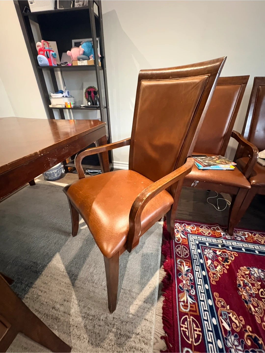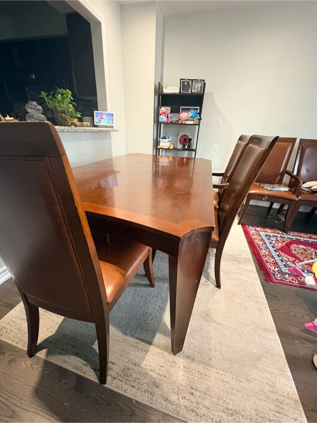 Tan Sofa with Decorative Pillows and solid wood dining table