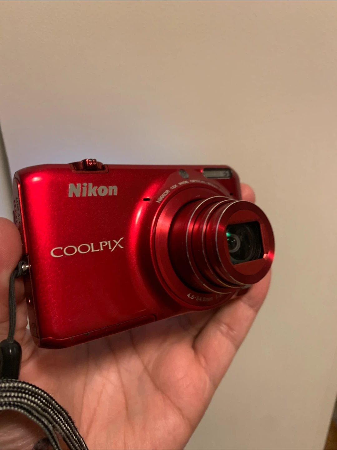 Capture memories in vibrant red with this used Nikon Coolpix S6500, a 16-megapixel digital camera featuring a 12x zoom and Wi-Fi connectivity. It's in excellent condition and ready for your next adventure.