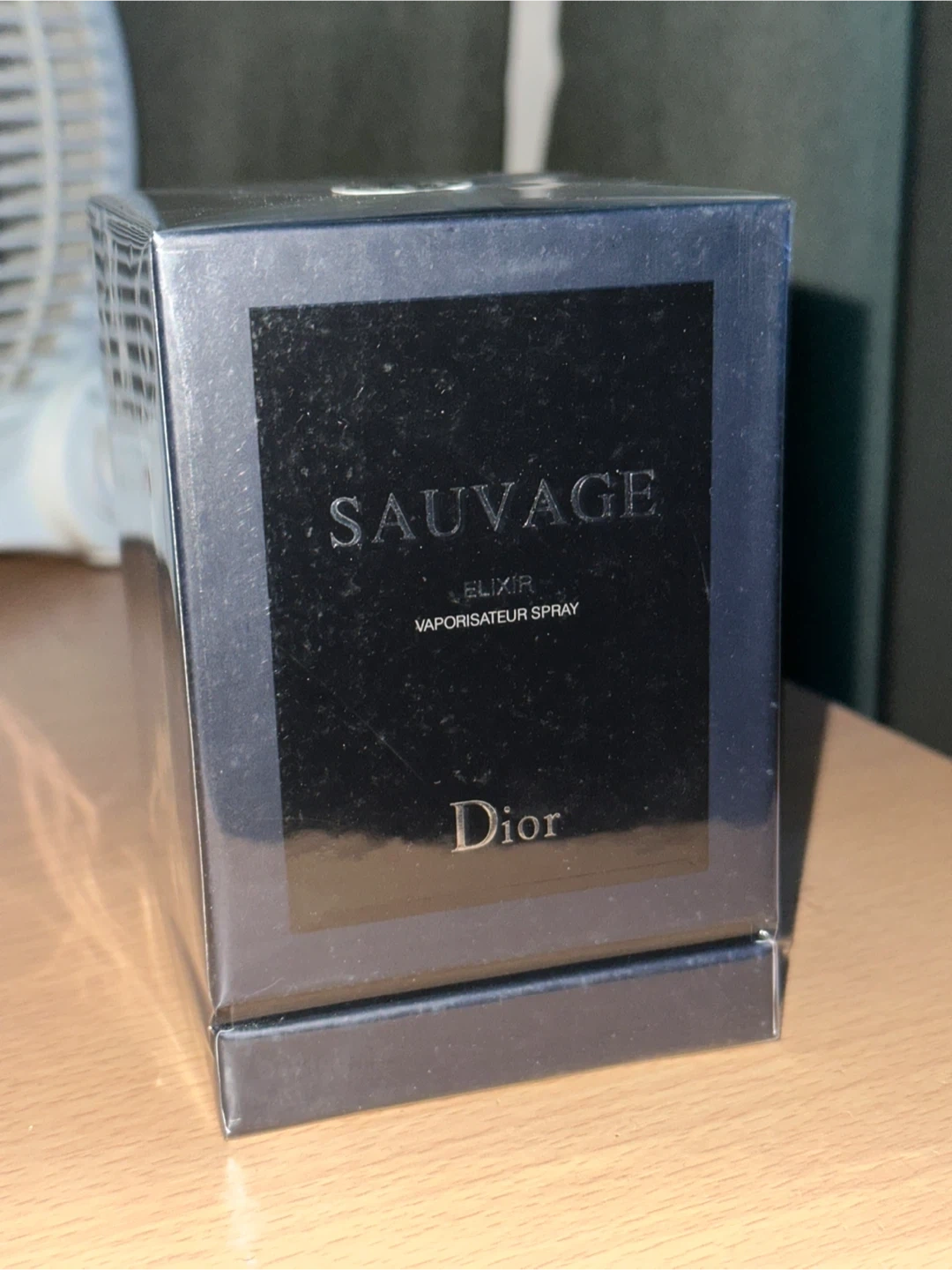 This is the Dior Sauvage Elixir Eau de Parfum. It's a vaporisateur spray. The fragrance comes in its original packaging.