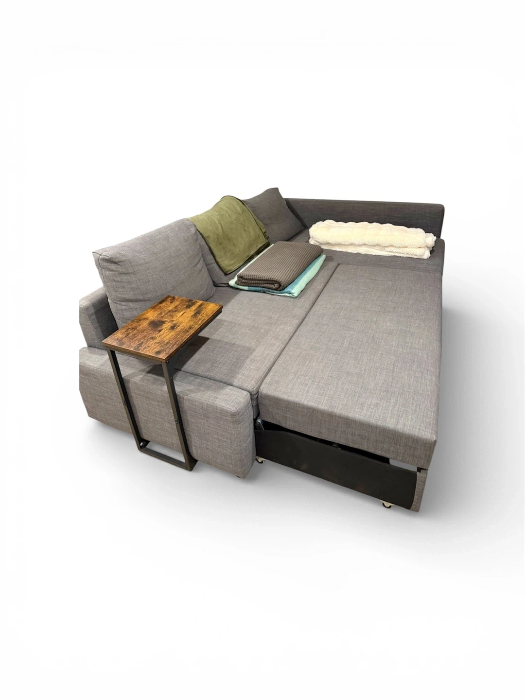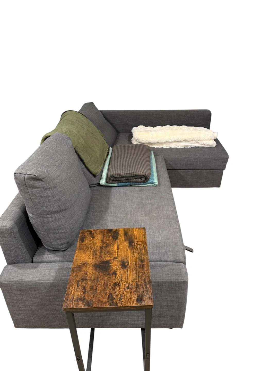 Selling a modern grey sectional couch in excellent condition. Very comfortable, clean, and converts into a pull-out bed, perfect for guests or everyday use.