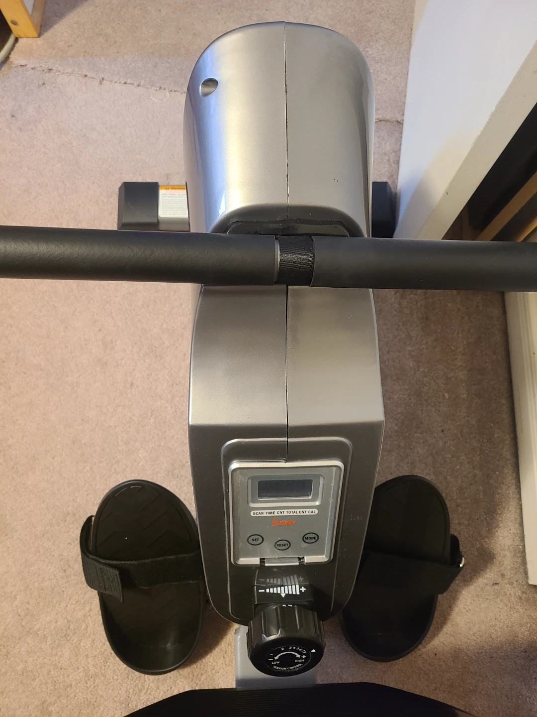 Selling a Sunny Health & Fitness rowing machine. It's in good condition and ready for a new workout buddy! The display shows scan, time, count, total count, and calories burned, so you can keep track of your progress. Brand new, professionally assembled, comes with Instructions Manual and tools for any eventual adjustments. 250lb weight capacity.