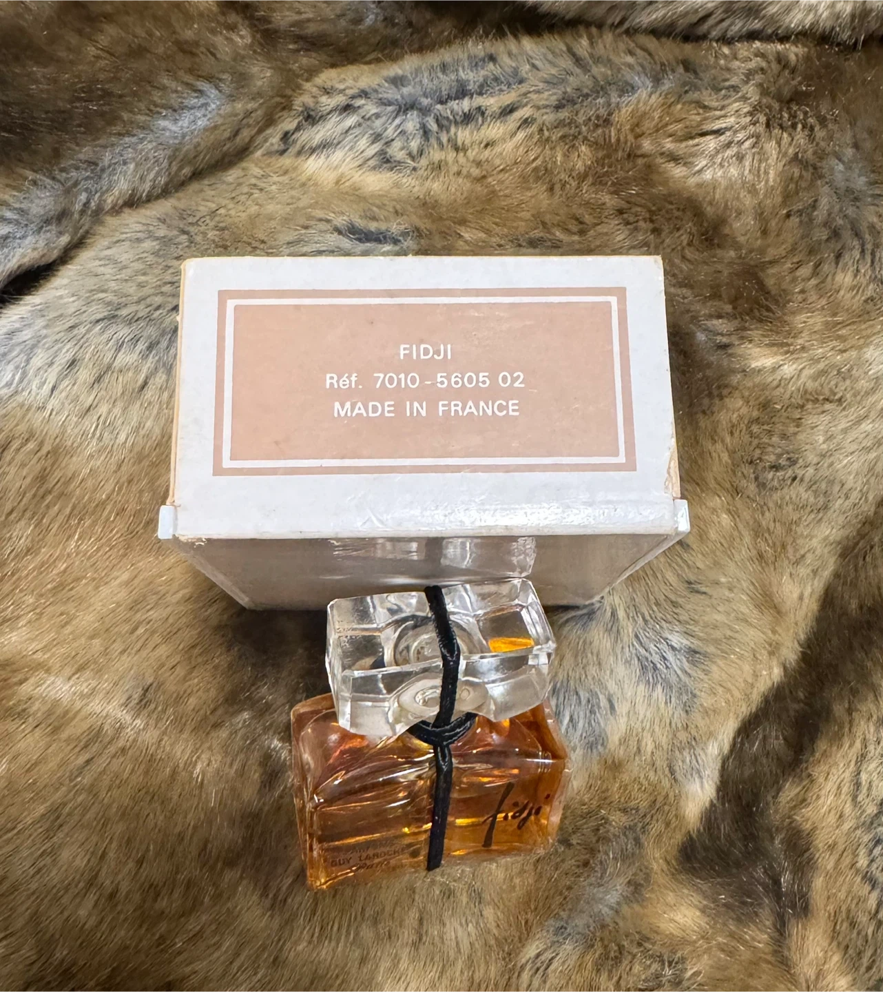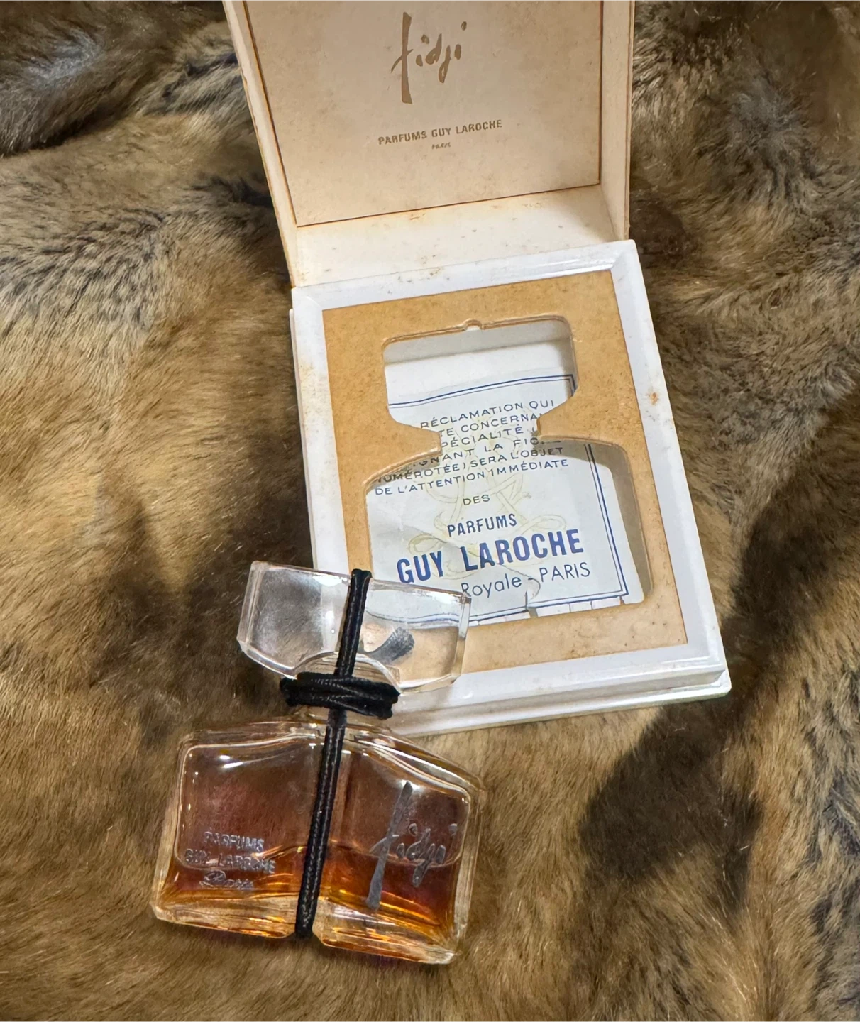 This is a vintage 7ml bottle of Fidji perfume by Guy Laroche Paris.