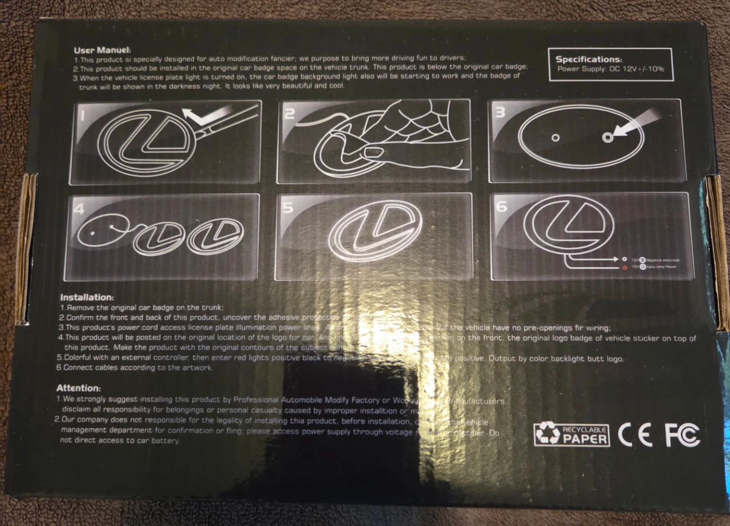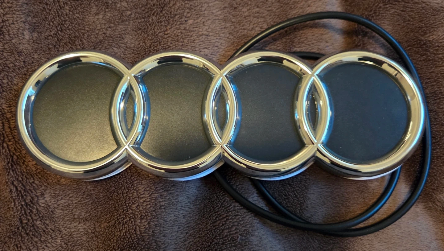 This is a Audi auto badge light for vehicle trunks. It illuminates the badge with red lights when connected to power. Includes original packaging and installation instructions.