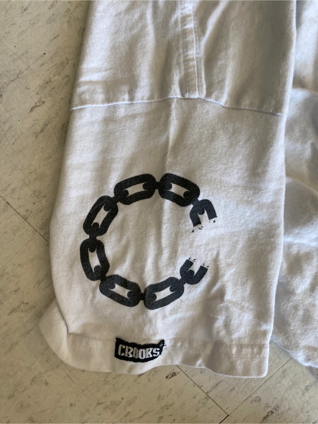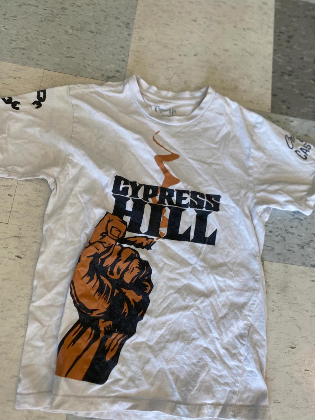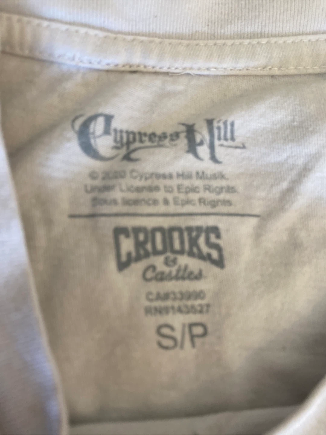White short-sleeve t-shirt featuring Cypress Hill and Crooks & Castles branding. It's a size S/P. Made in 2020. Rare collab shirt.