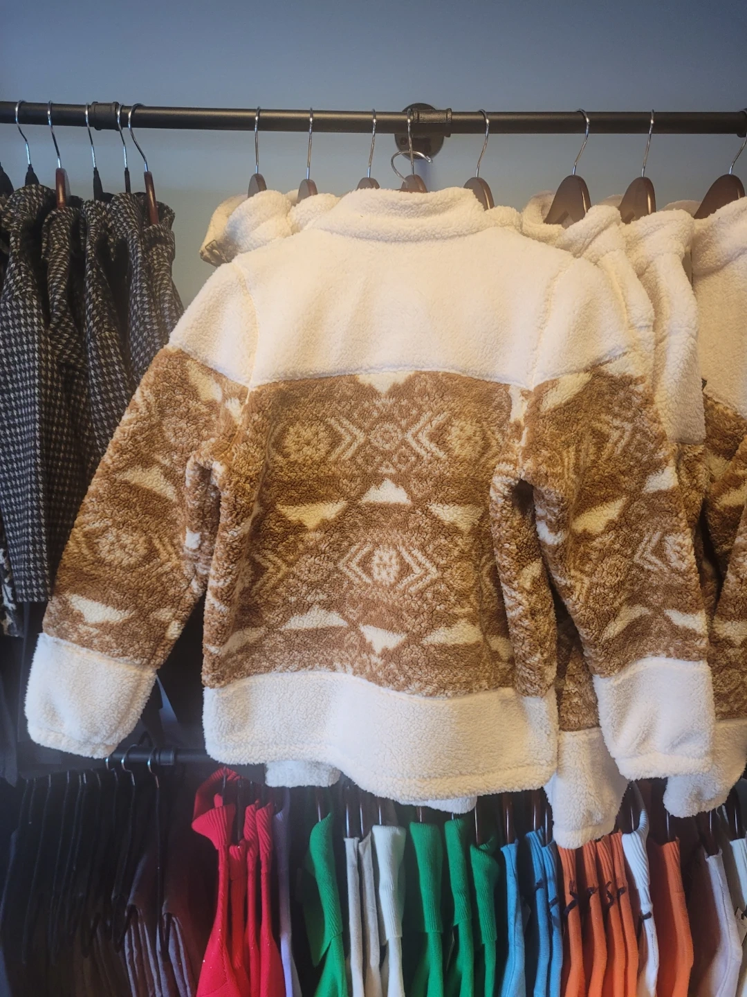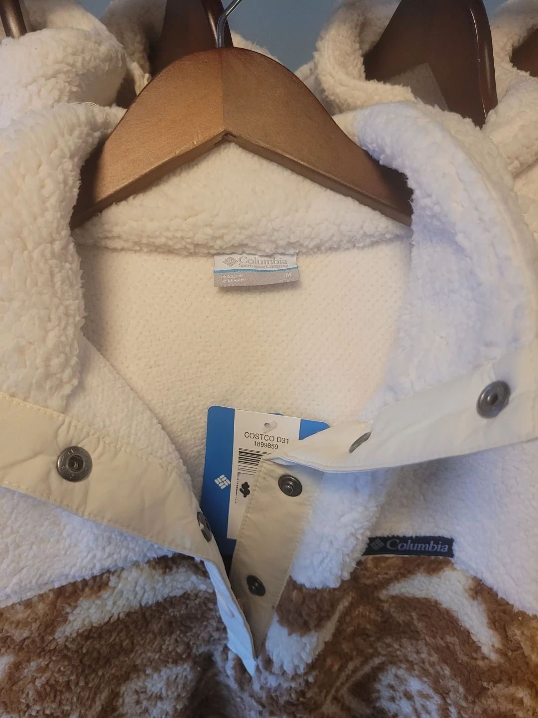 Selling these new Womens Columbia fleece pullovers in cream and brown.