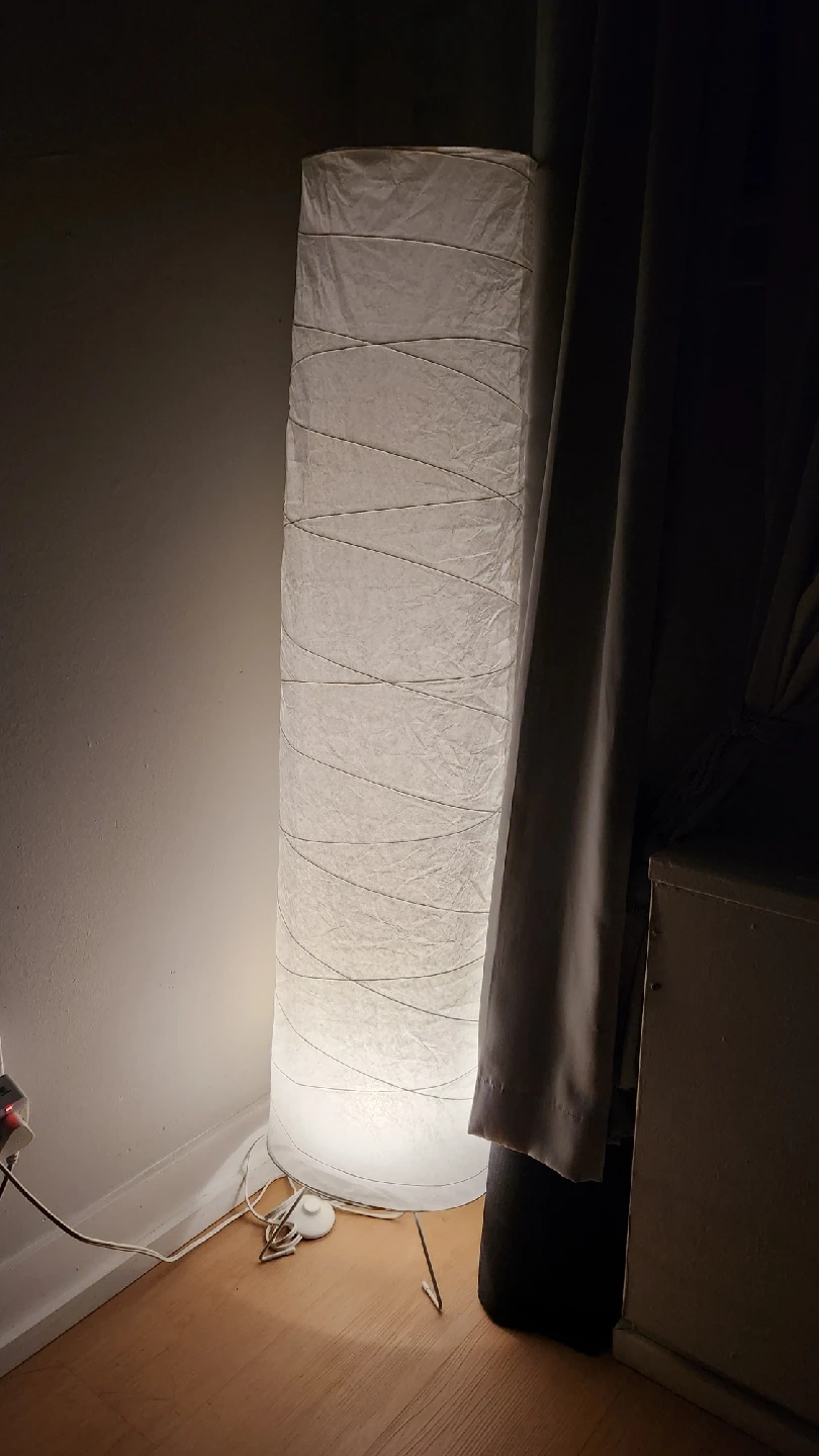 10Selling a floor lamp with a rice paper shade. It gives off a nice, warm light. In good condition and ready to brighten up your space!