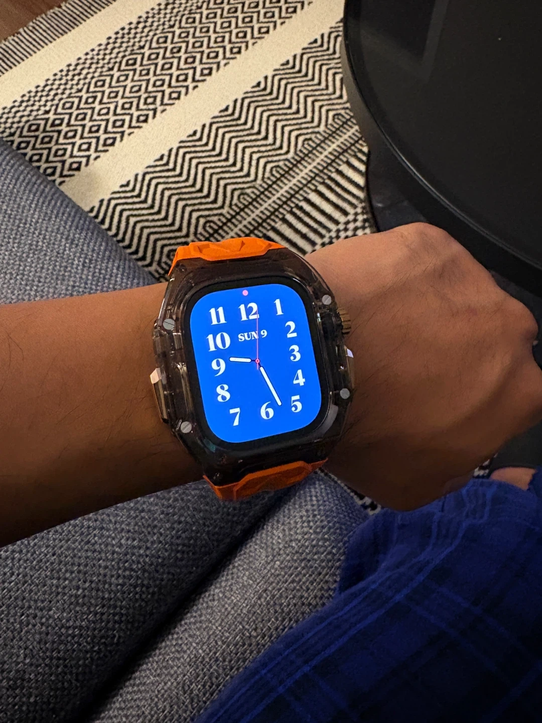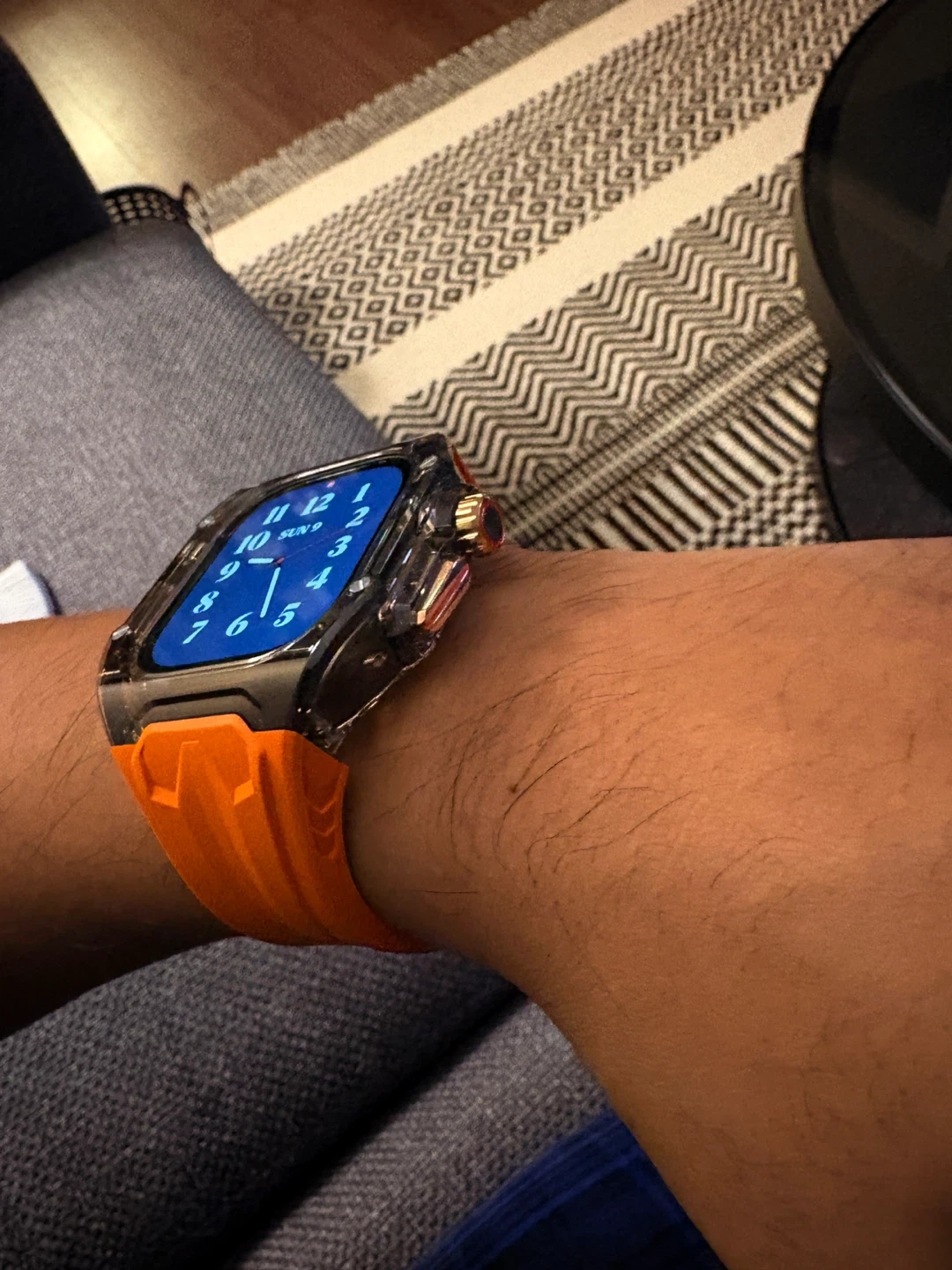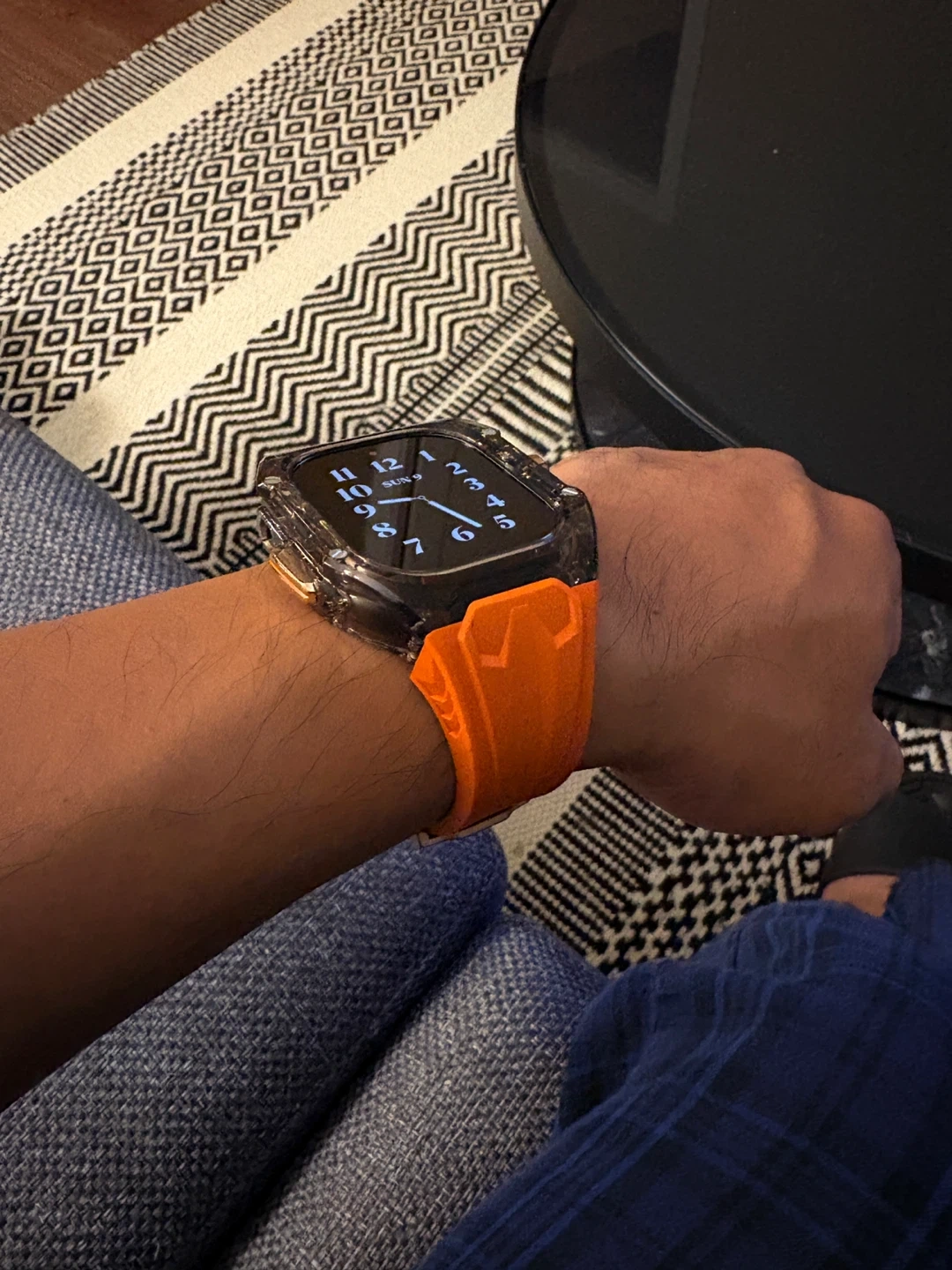 65Selling an Apple Watch Ultra 1/2 case with an orange band in Richard Mille style. It’s never been used and ready for a new home!