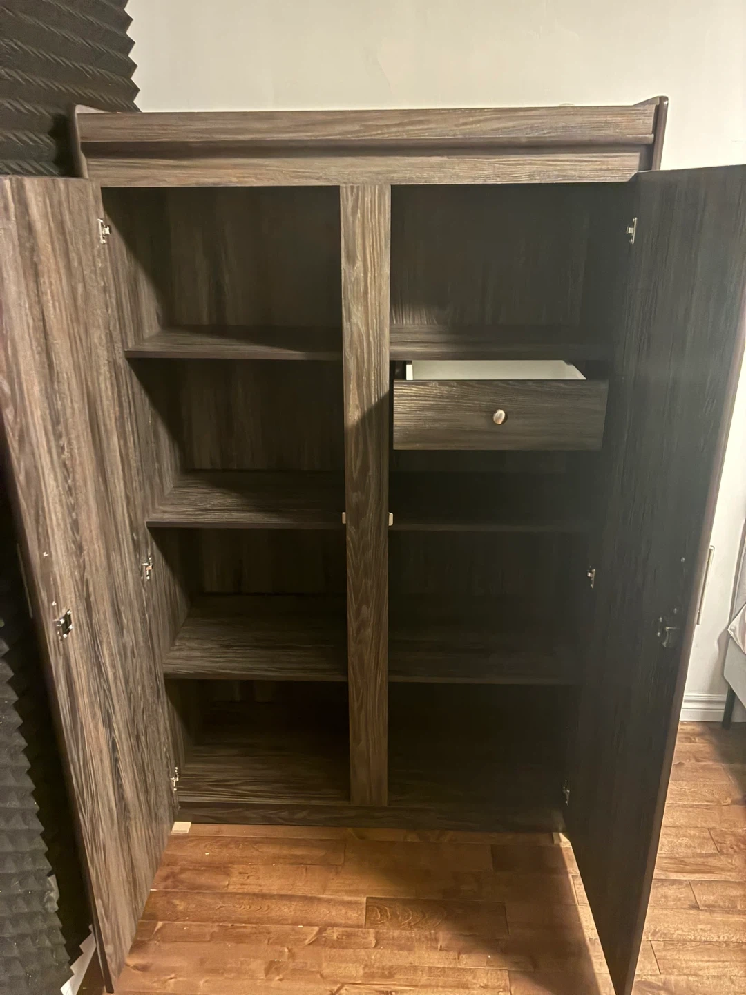 Brown Wood Grain Storage Cabinet with Drawers
