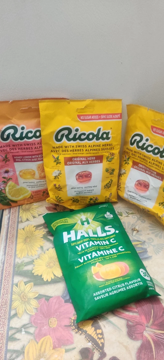 1000+Selling some cough drops to help you get through cold season! Included are Ricola Swiss Alpine Herbs (Original Herb and Honey Lemon with Echinacea) and Halls Vitamin C Assorted Citrus Flavour