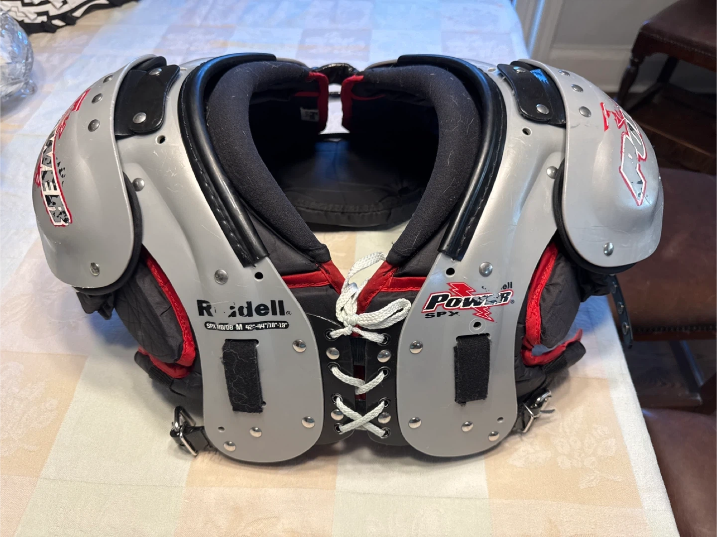600Get ready for the season with these Riddell Power SPX shoulder pads! They are in good condition and ready to help you perform your best on the field. Size is medium, fitting chest sizes 42"-44" and shoulder width 17"-18".