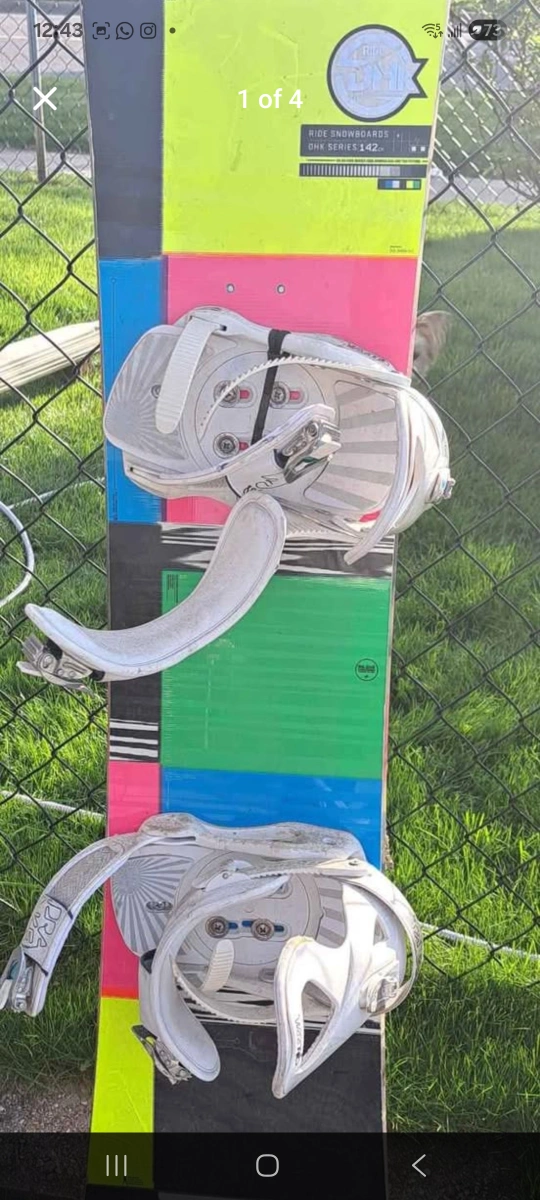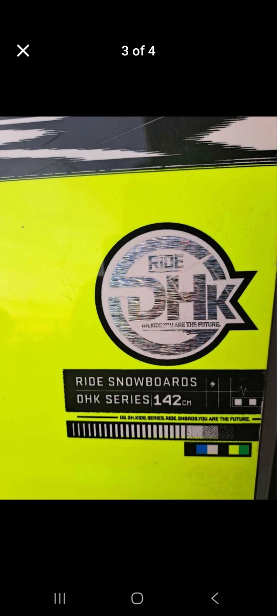 10Brand: Ride Snowboard with bindings COMPARE Model year: 2012 Junior product. Measure (Tip/Waist/Tail): 0/0/0 mm Turning radius: 6.50 m (138 cm) Sizes: 138, [142,] 146 cm Manufacturers description Built Grom Tough. Not your typical kids board, the DHK offers tons of pop and smooth stability. This twin Ride features adult style upgrades including 85A Slimewalls@ and ProRize'" Shaping. Built to go anywhere, anytime, this freestyle Ride will launch Pick up in Markham Brimley and Steeles area or meet at Markville mall or Fairview mall