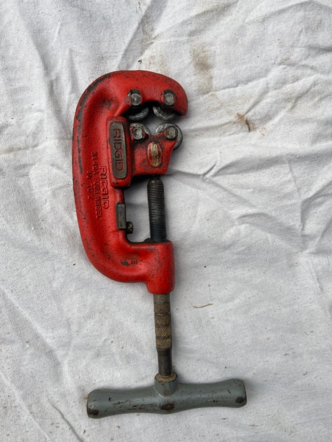 Selling a Ridgid pipe cutter. It's in used condition, showing some signs of wear, but still fully functional for your plumbing needs