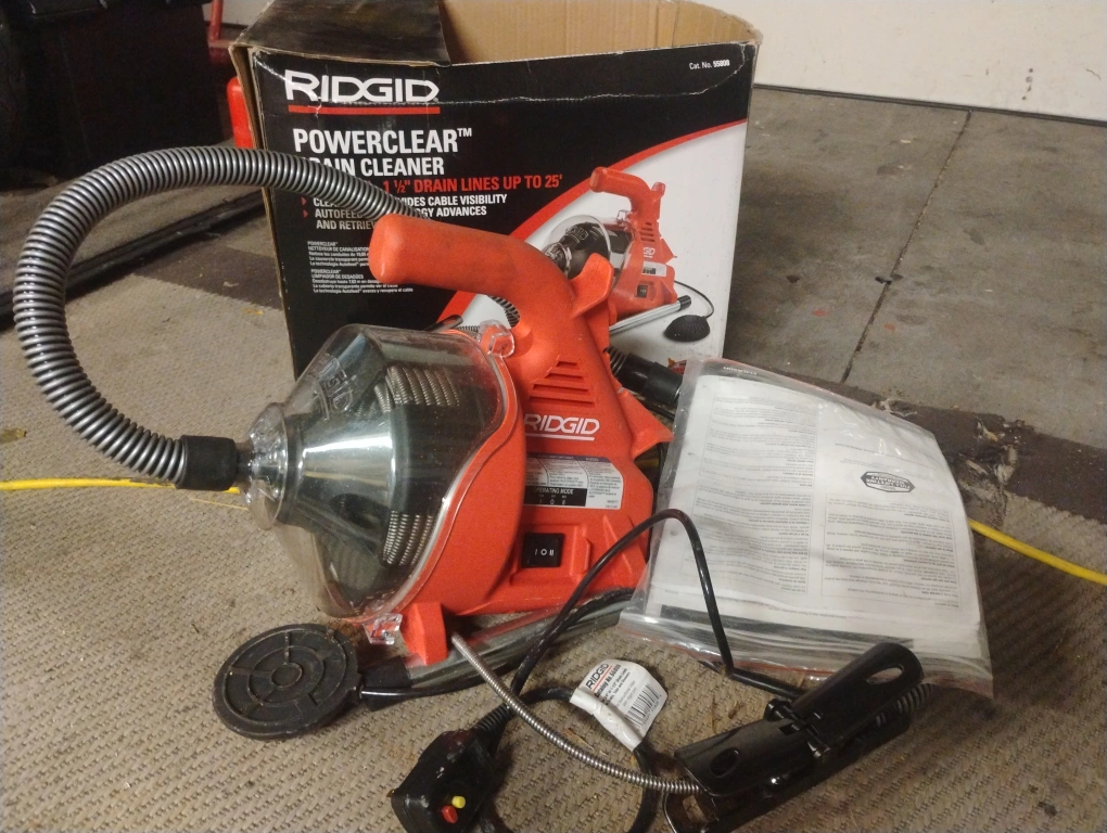 17Selling a RIDGID PowerClear drain cleaner in excellent condition! This tool is designed for 1 ½" drain lines up to 25'. It comes with the original box and all included components, including the Autofeed technology for easy cable advancement. Great for clearing clogged drains quickly and efficiently