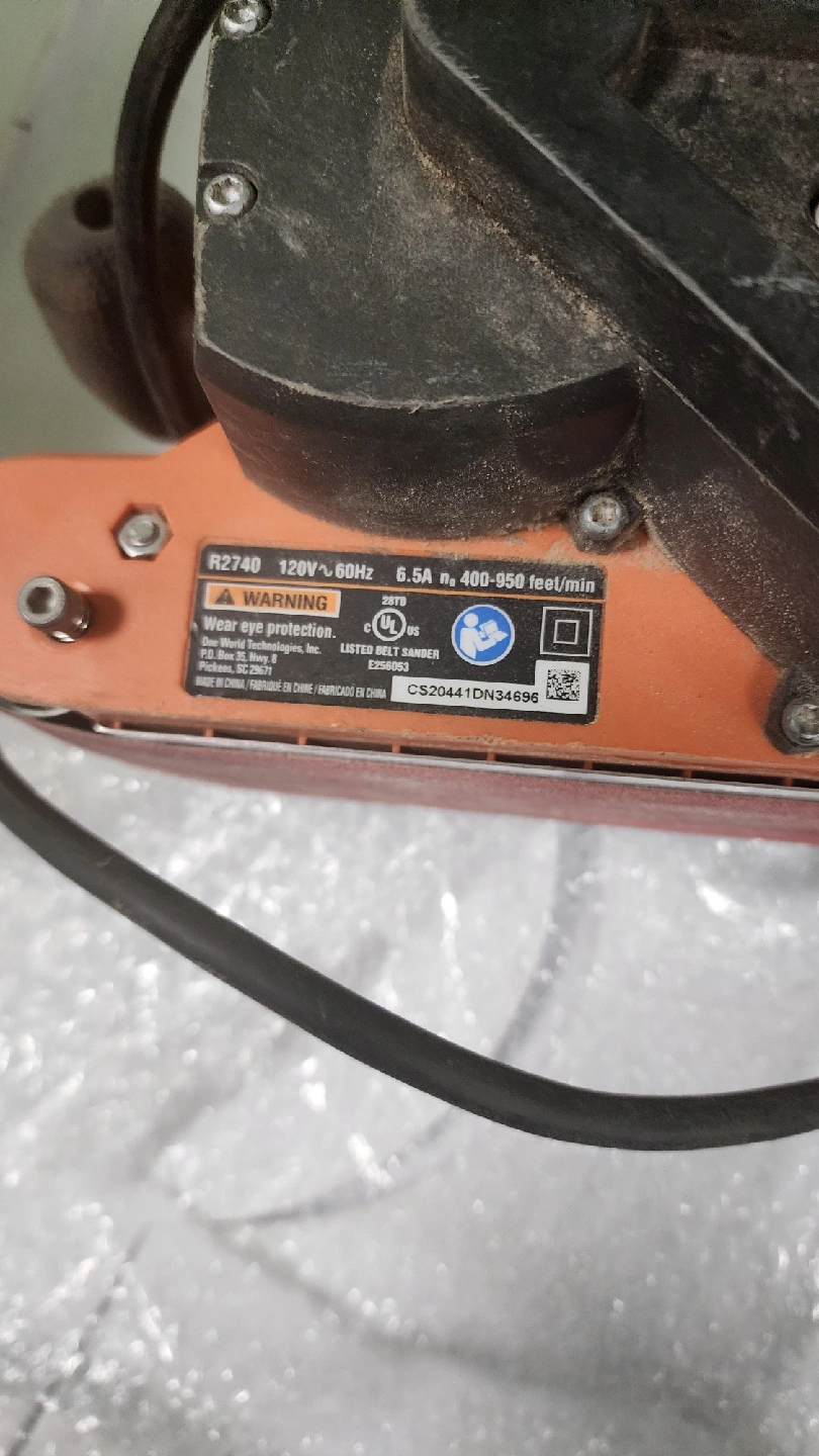 66Selling a Ridgid belt sander, model R2740. It runs at 120V and 60Hz, with 6.5A. The speed is 400-950 feet/min. It has Air Guard Technology.