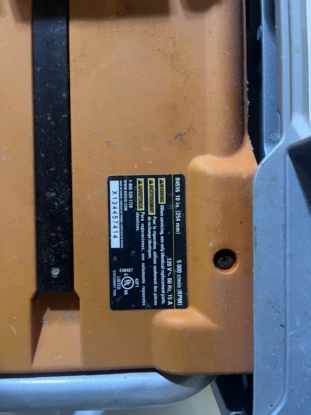 34Selling a Ridgid R4516 10-inch table saw. It's in good condition and ready for your next project! The saw operates at 120 V / 60 Hz, 15 A, and has a speed of 5000 r/min (RPM) Location: Scarborough - Morningside Ave and 401 Or Newmarket