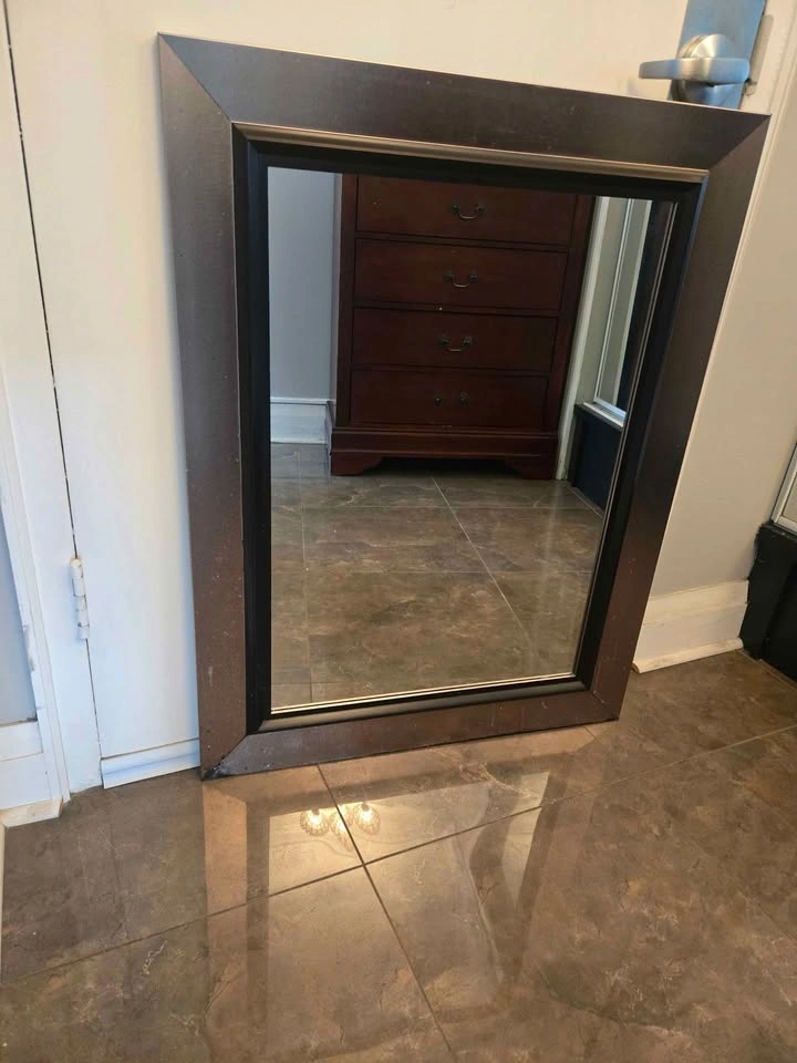 2) Rectangular wall mirror with bronze frame, in good condition. Size 35"x27". For $20 cash.