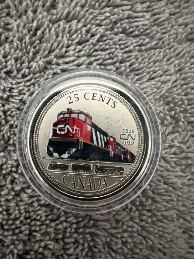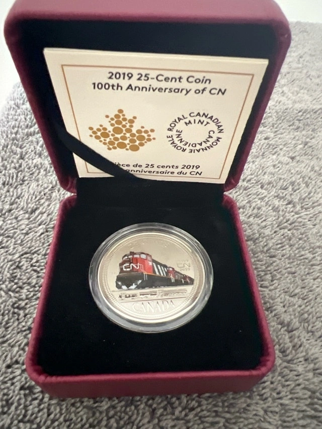 Offering a 2019 Canadian Quarter celebrating the 100th Anniversary of CN. This commemorative quarter features a detailed image of a CN train. It's a great piece for collectors and railway enthusiasts. The coin comes in its original presentation case with a certificate of authenticity. Year: 2019, Theme: 100th Anniversary of CN, Denomination: 25 Cents, Packaging: Original Presentation Case. If the ad is up, it's still available!