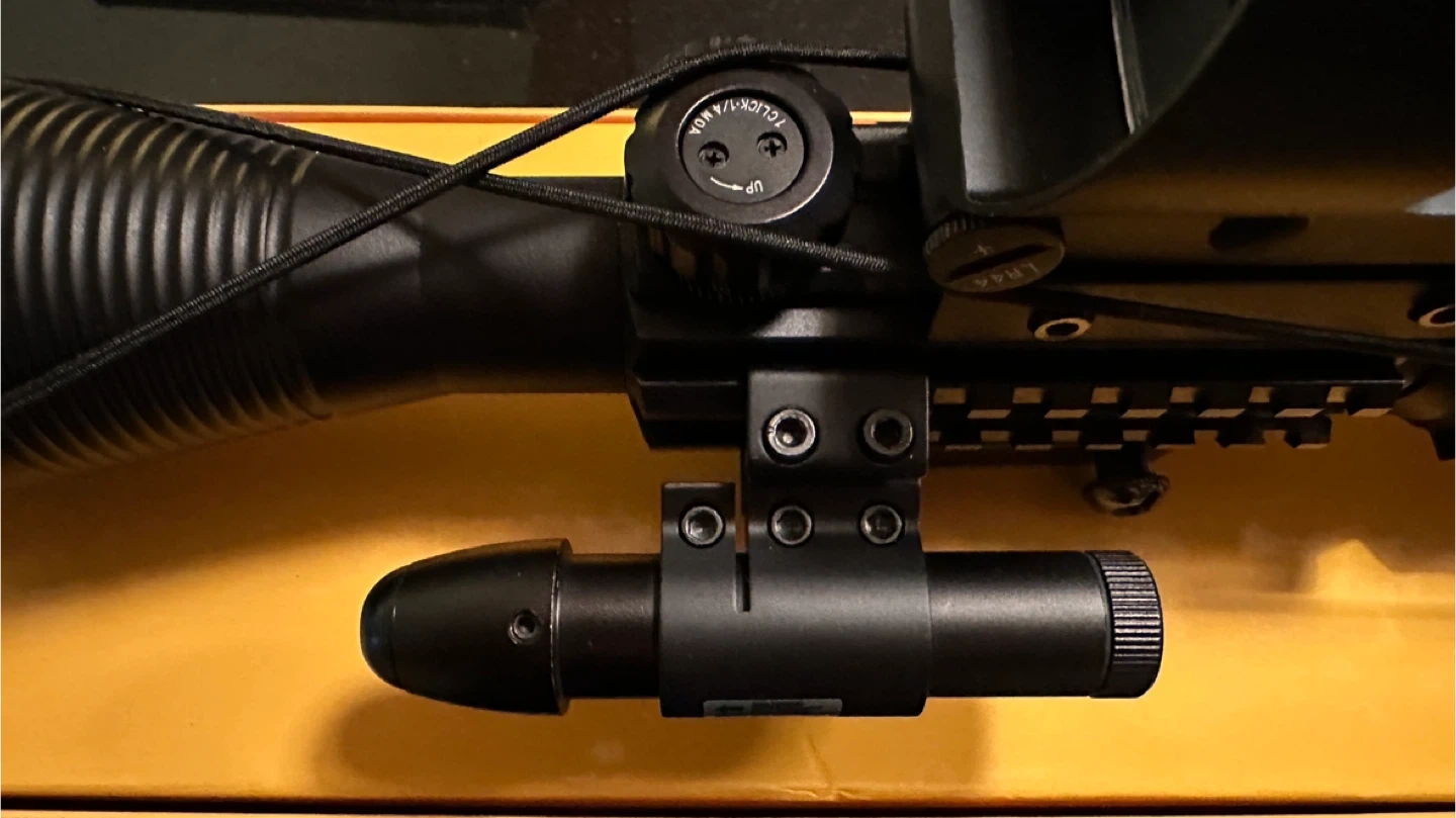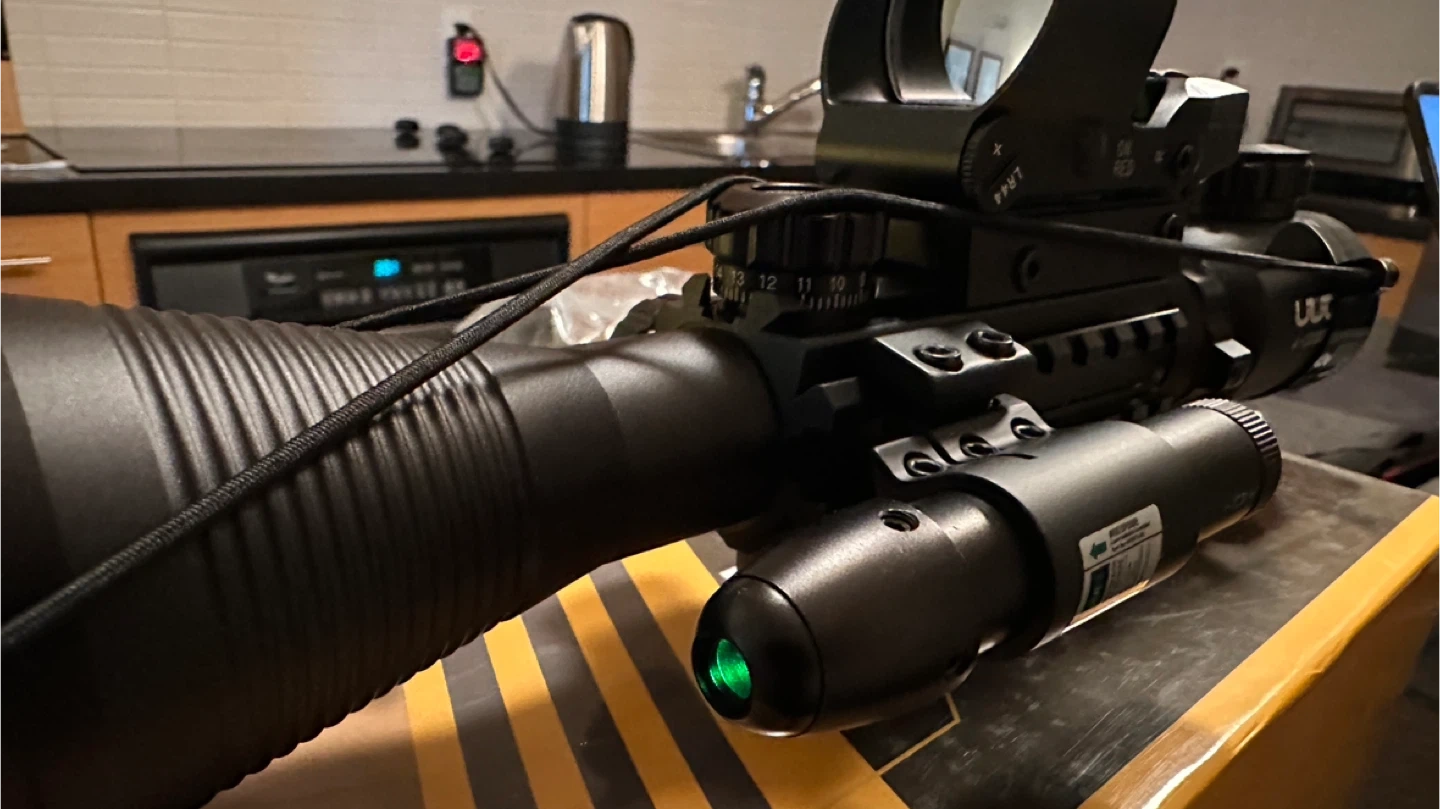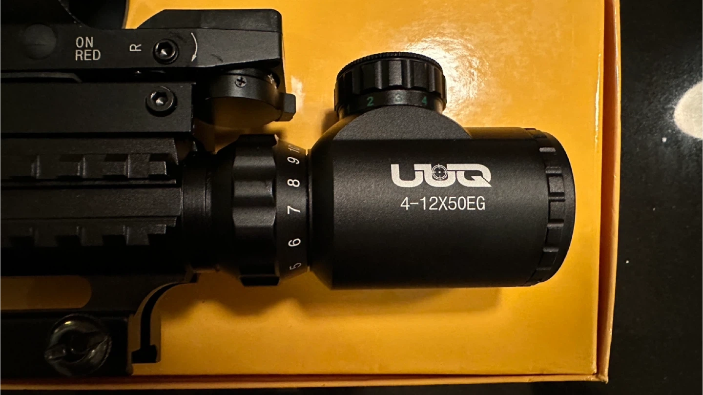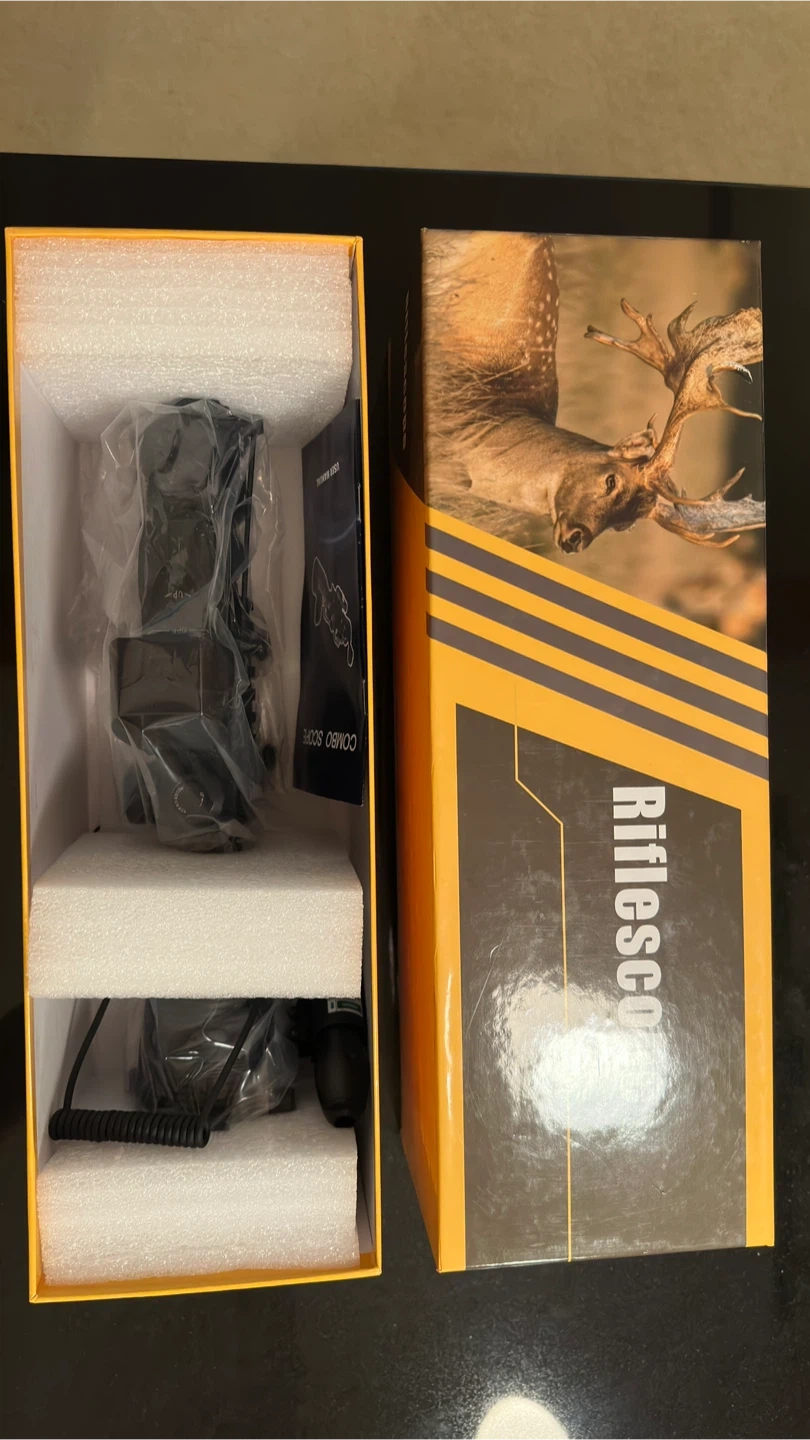 Selling a riflescope that's in great shape and comes with its original box! 12x50 magnification range Dual illuminated with laser sight and holographic dot reflex sight