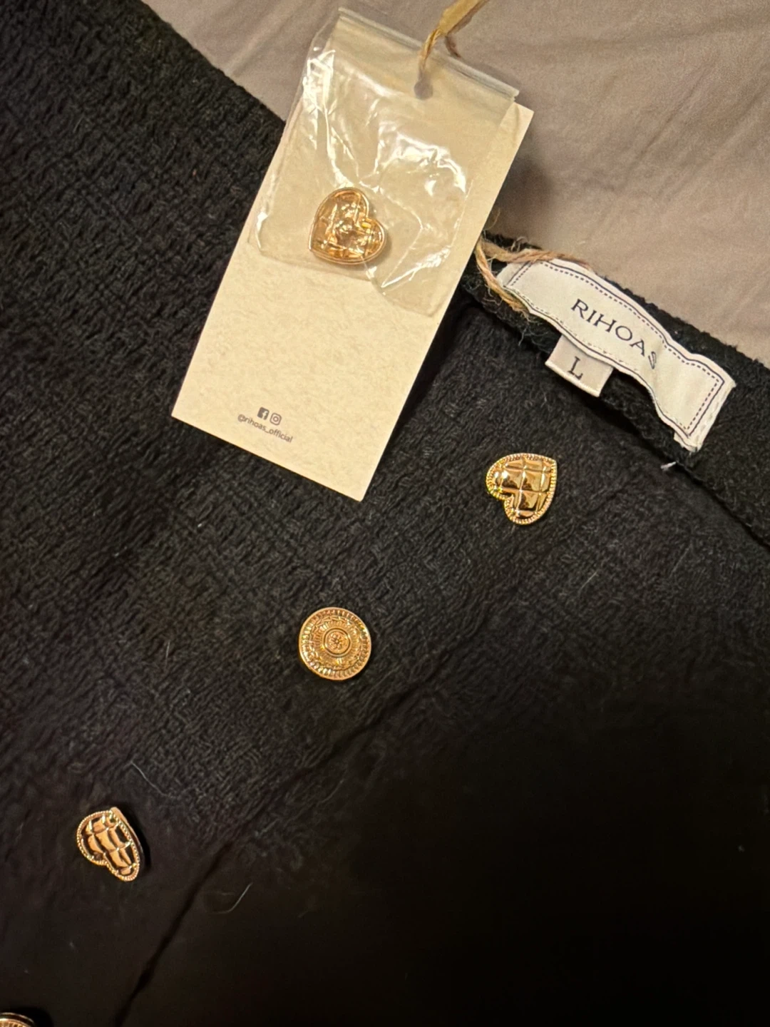 175Selling a Rihoas black skirt in size L. It features gold-tone heart and round buttons. It's in great condition and ready for a new home! 100%new✨ Only available for pick up💖🙌🏻 Pick up - Finch station (North York) any time