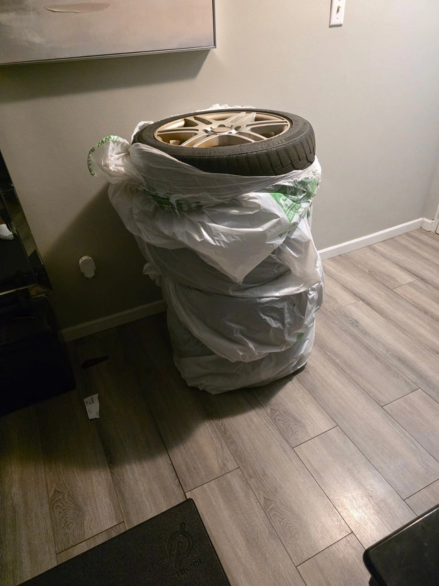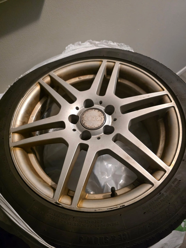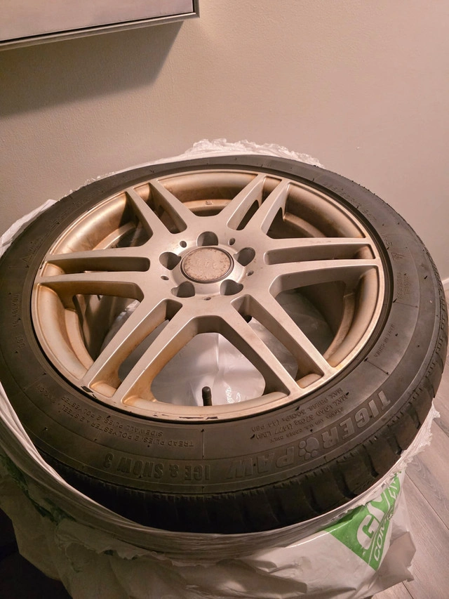 Offering a set of four rims with tires, 5x112 bolt pattern, sized at 225/50R17. These used rims are ready to roll and are looking for a new home. Additional details include: * Tire Size: 225/50R17 * Condition: Used If the ad's still up, they're still up for grabs!