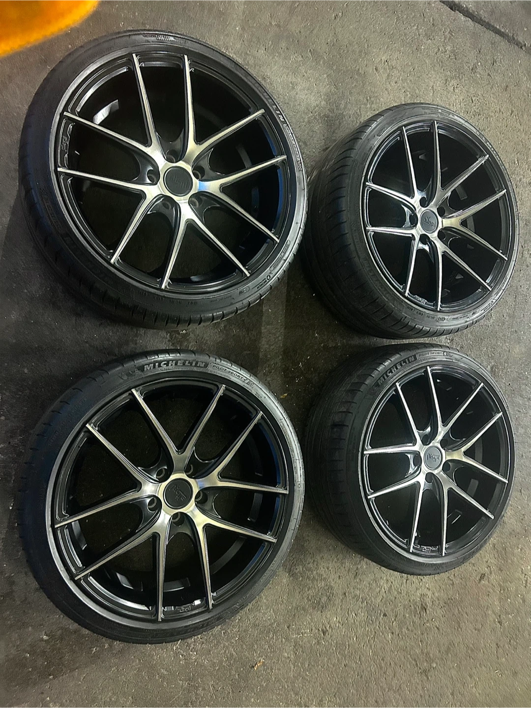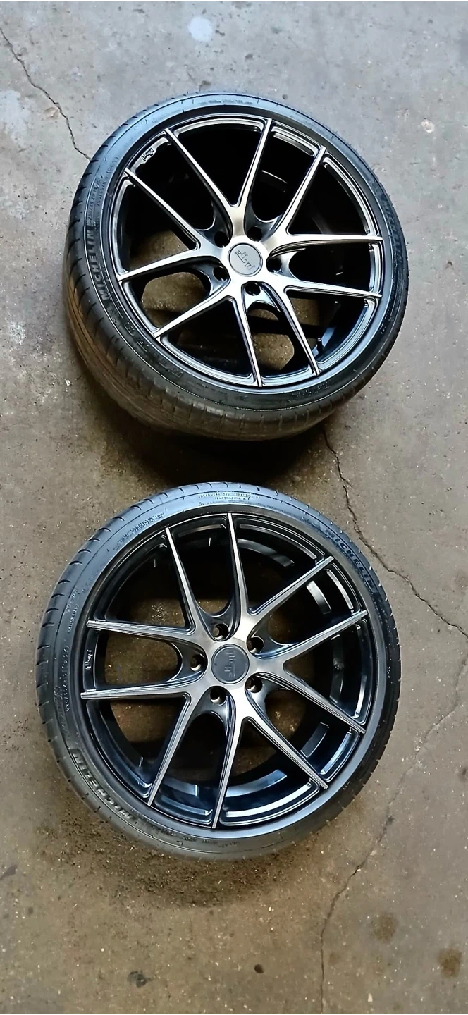 81Selling my Set of 4 Michelin Tires with BBS staggered Rims ✅Excellent Condition Selling because the rear wheels are too wide and big for my car. 📌 Details: • Brand: Michelin Pilot Sport • Size: 225/40 ZR19 • Rims: Niche Alloy Wheels (Gloss Black with Silver accents) • Condition: Lightly used, no cracks or major curb rash. Very clean and well-kept. • Style: 10-spoke design, high-performance look. • Tires have 80% tread left (see photos). ✅ Perfect upgrade for performance cars, sedans, or coupes. ✅ Ready to mount and drive.