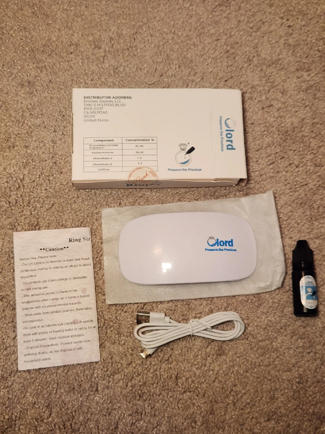 906brand new Ring Size Adjuster Kit! pick up at 280 Donlands Avenue. This kit is designed to help you adjust your ring size with ease, preventing your ring from spinning or falling off. It includes a UV light for curing the adhesive, ensuring a secure and customized fit. It's an easy and quick solution for making your rings fit perfectly!