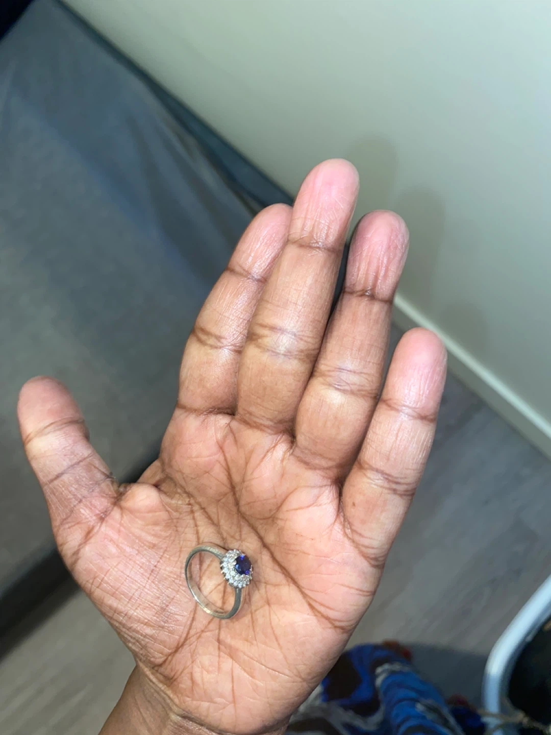 60Silver ring with a purple stone surrounded by smaller clear stones