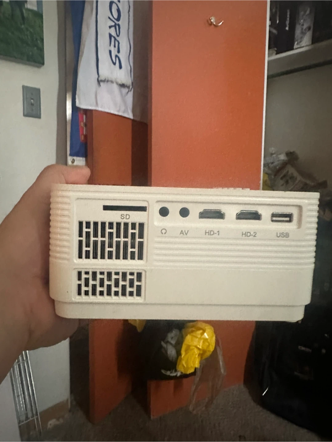This is a VANKYO Leisure 470 projector. It has multiple input ports including SD, AV, HD-1, HD-2, and USB. This unit comes with its original carrying case and power cord. It's great for home entertainment! No remote with it sorry