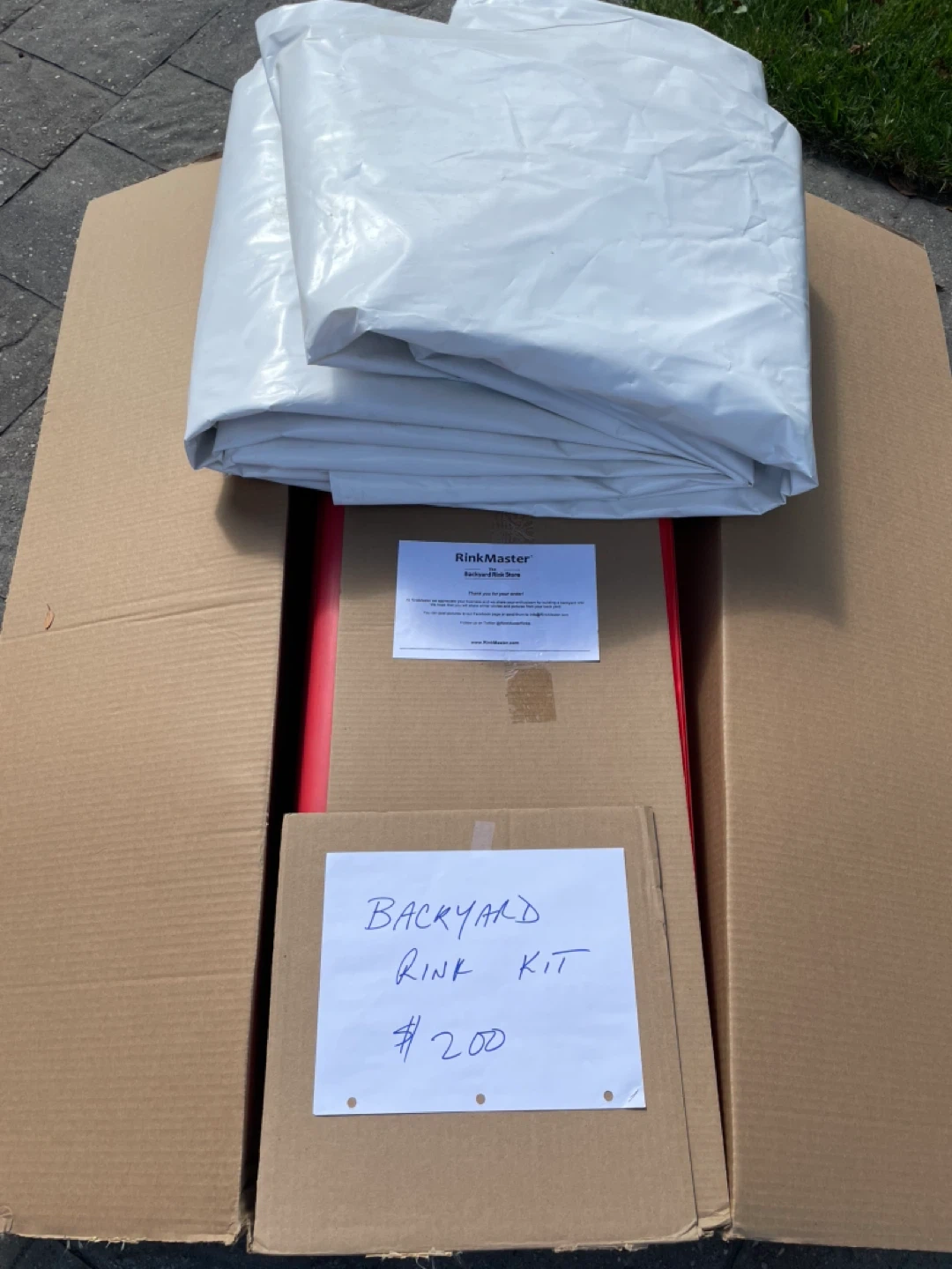 10Get ready for winter fun with this RinkMaster backyard rink kit! The kit makes a rink that's 19' x 30'. Used once.