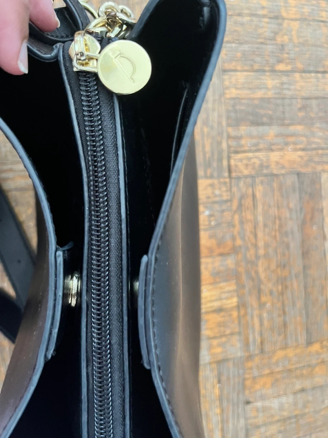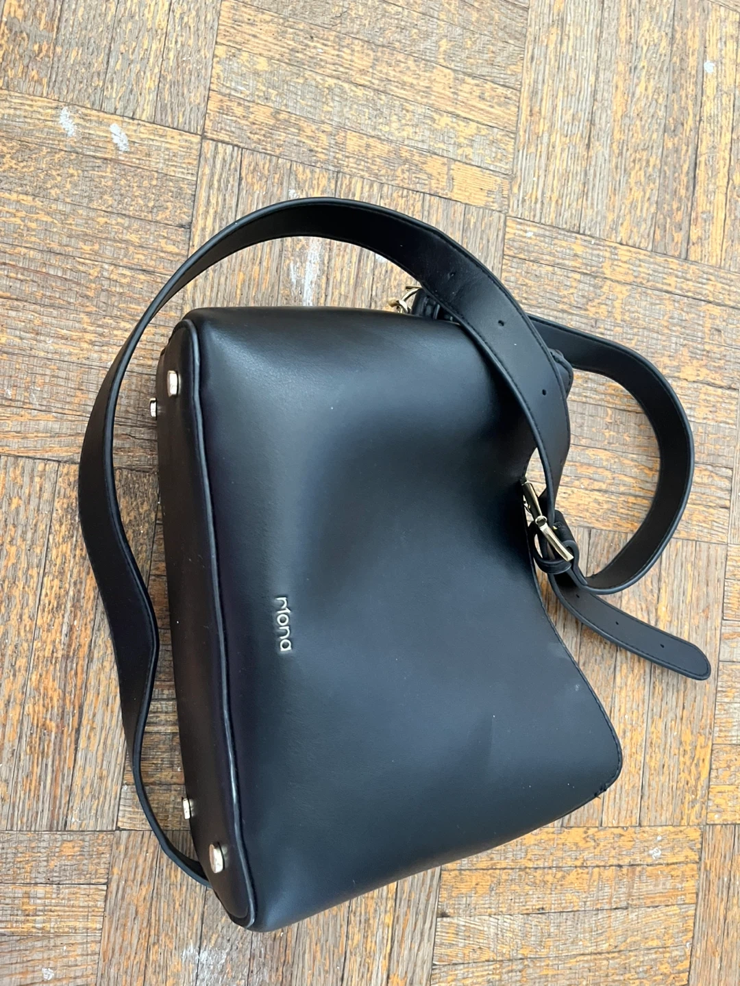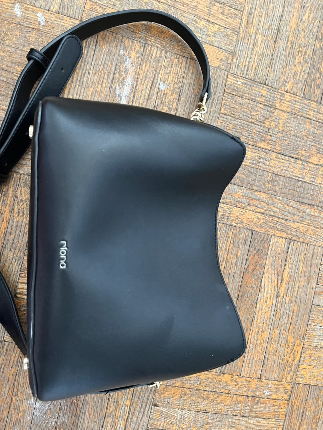 Selling a stylish Riona black leather shoulder bag! It's in great condition and perfect for everyday use. The bag features a sleek design with a comfortable shoulder strap. The interior has a zipper. Feel free to ask any questions!