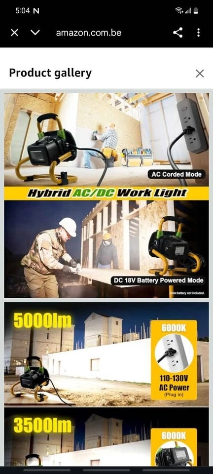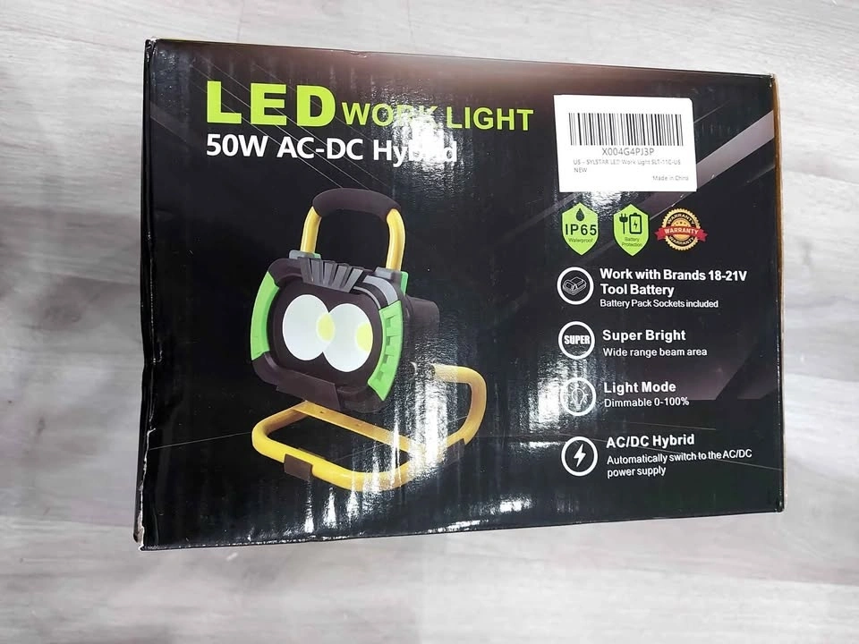 SYLSTAR AC/DC 50W 5000LM Hybrid Rechargeable LED Floodlight, Ultra Bright Construction Projector, Compatible with Makita 18V Battery, Dimmable Intensity