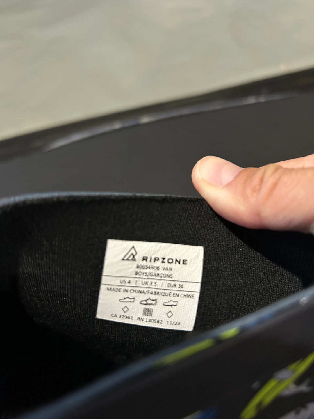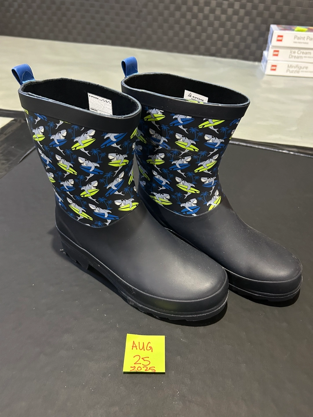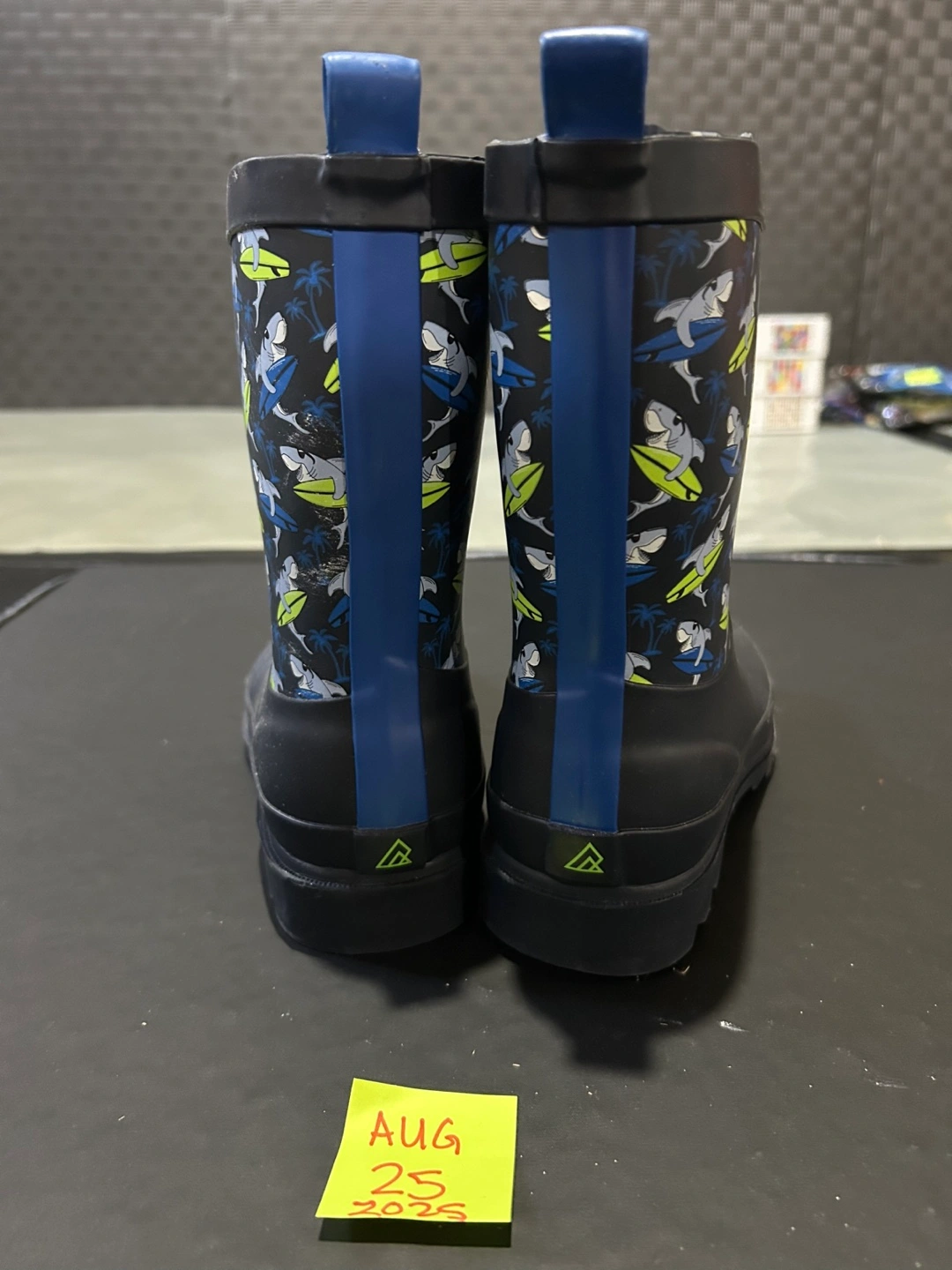 These Ripzone rain boots are perfect for keeping your little one's feet dry on those wet days! They feature a fun shark and palm tree design. - Brand: Ripzone - Size: US 4 (UK 3.5, EUR 36) Worn 1-2 times only and then stored for the season. Can do porch pick up or drop off within certain boundaries.