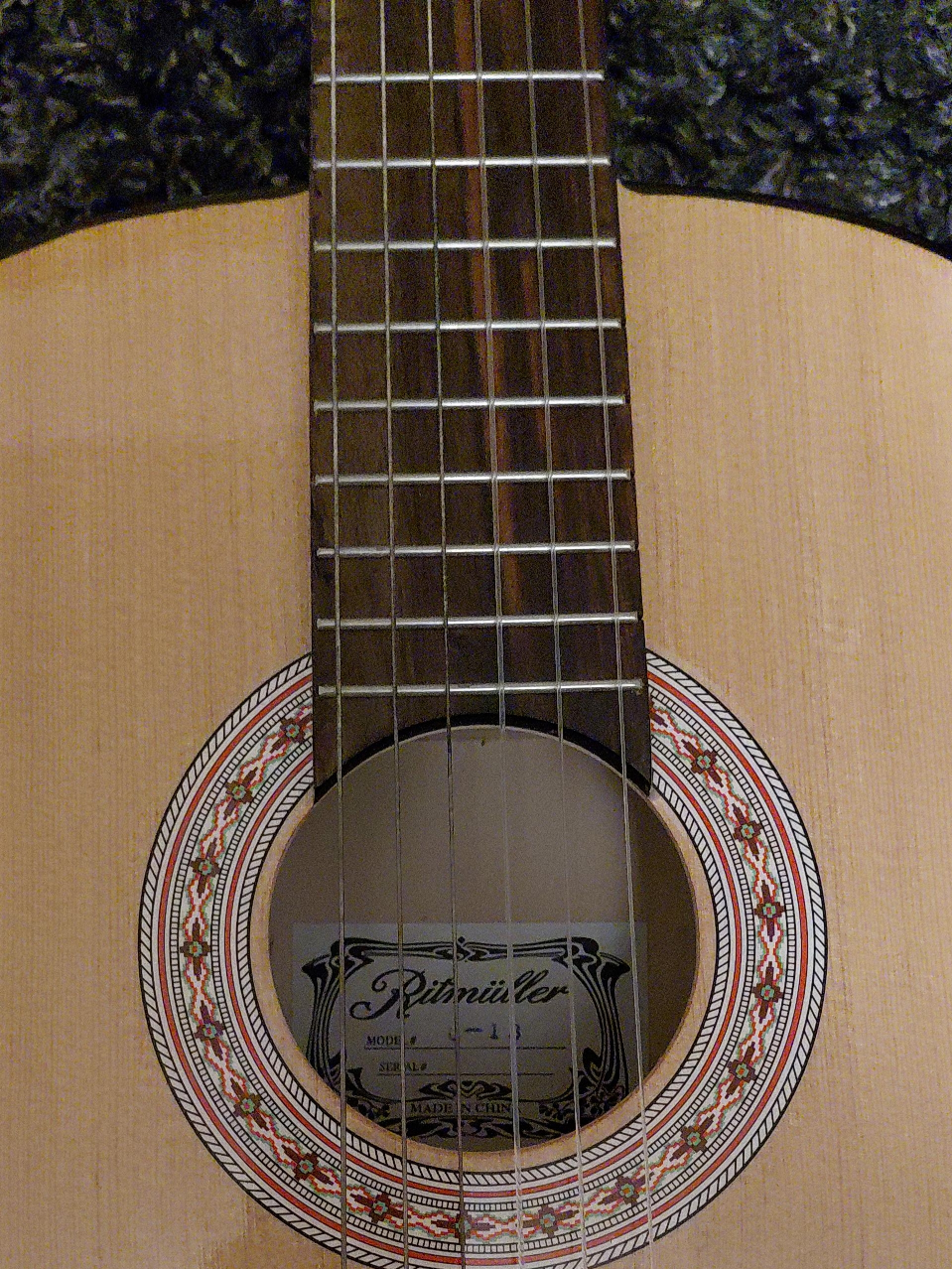 Selling a Ritmüller classical guitar in good condition. It's a beautiful instrument that's perfect for beginners or experienced players alike. The model number is -13.