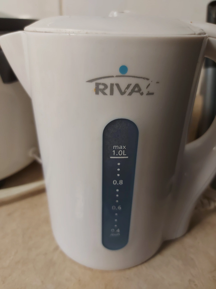 Selling a Rival electric kettle in white! It has a 1.0L capacity, perfect for making tea or coffee. It's in good working condition and ready for a new home