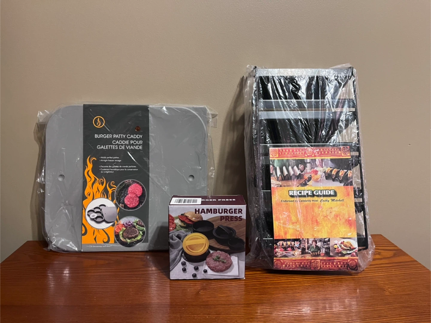 HAMBURGER PRESS, BURGER CADDY & TACO RACK